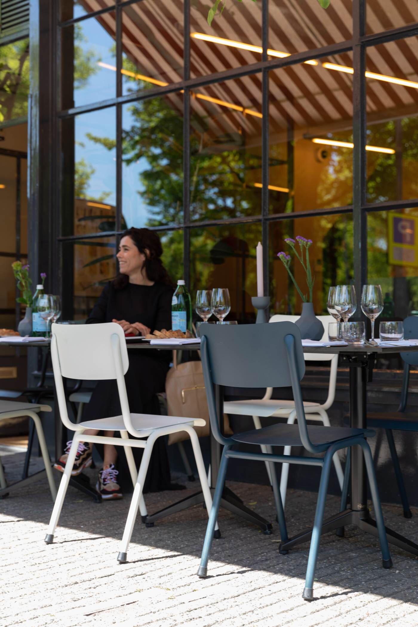 Und die Stühle sind stapelbar, sodass sie einfach zur Seite gestellt oder verstaut werden können, und für den "heavy duty" Einsatz im Gastrobereich geeignet.