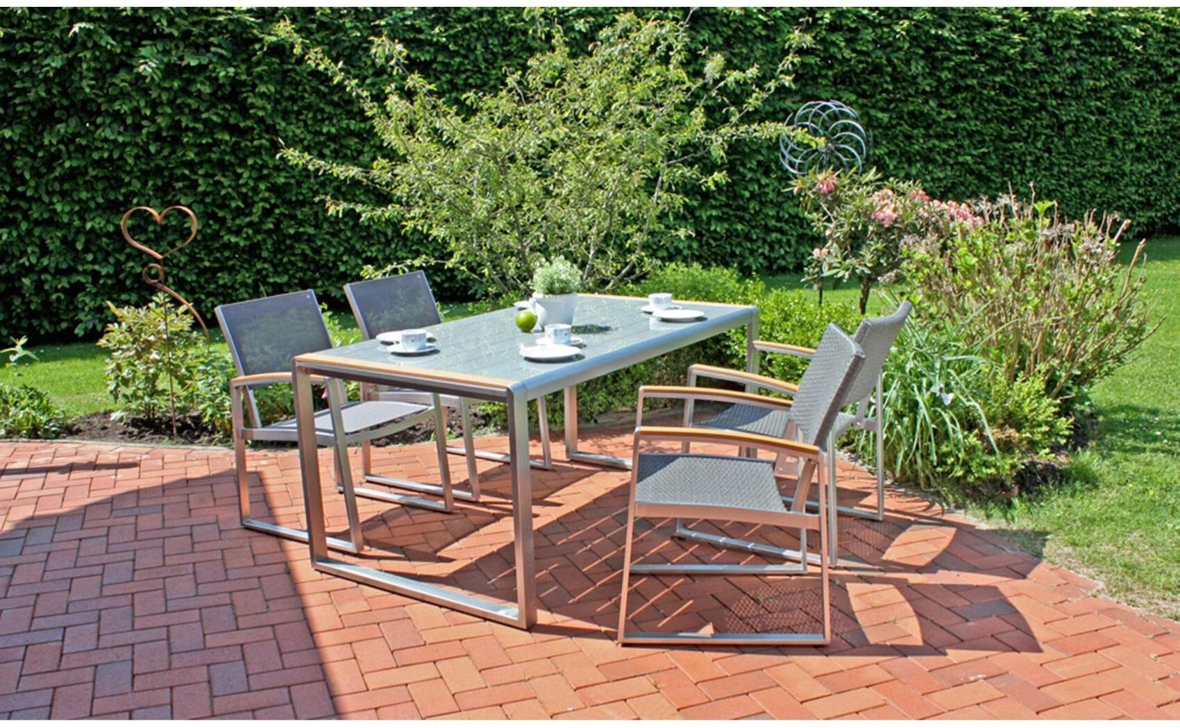 Gartentisch AVA 160 x 90 cm mit Glasplatte im Slat-Look Gestell Alu