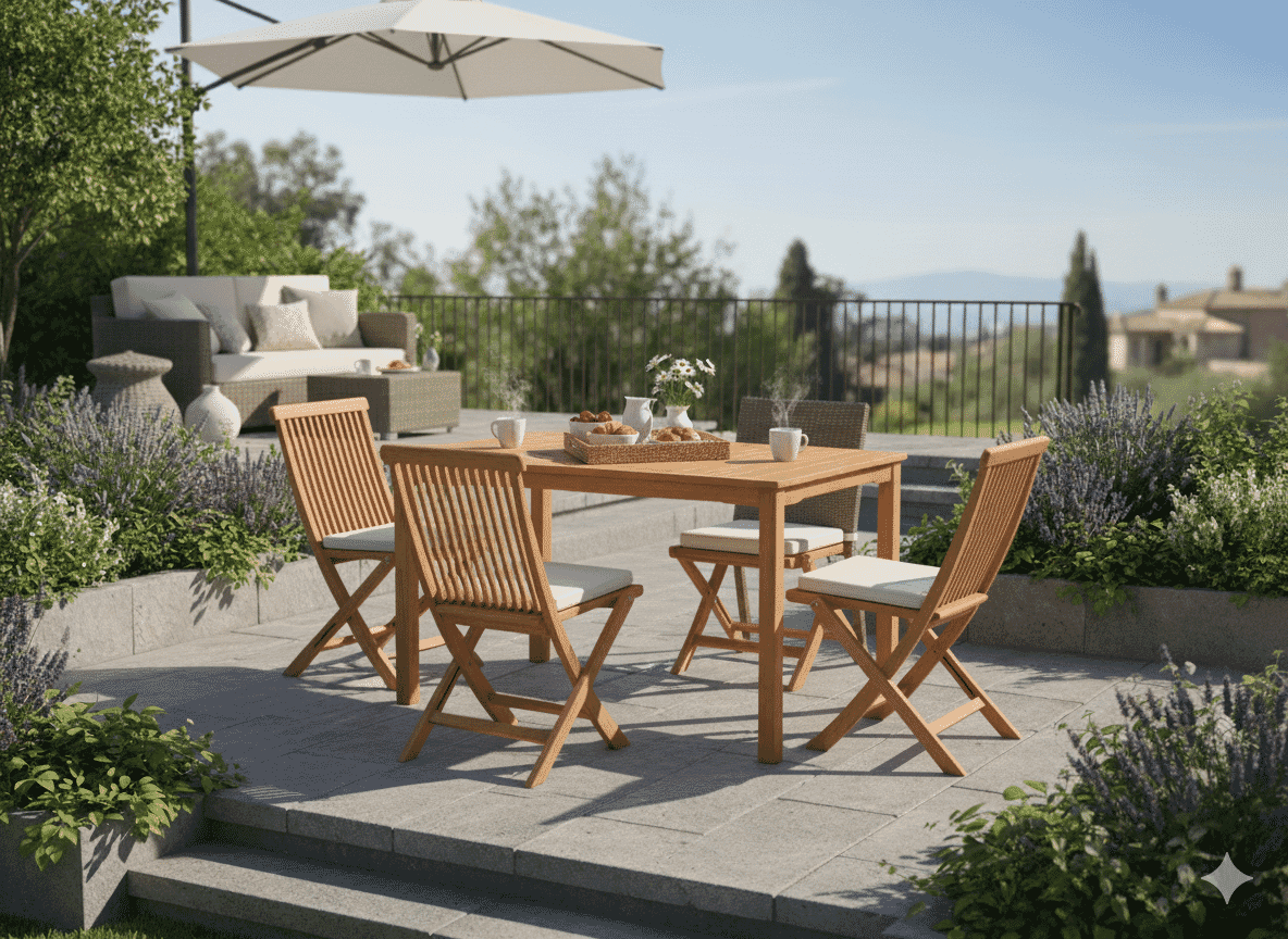 Dieser Tisch mit den Rillen besteht aus haltbarem Eukalyptusholz. Das hat eine warme Färbung, duftet phänomenal gut. Sie verstehen, warum die Koalabären diese Bäume lieben, und Sie sind jetzt auch dran mit der Begeisterung für Eukalyptusholz. Garden Pleasure, der Name sagt doch schon alles. Genießen Sie es!