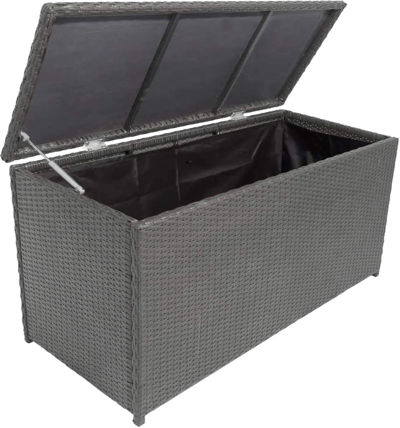 Mit der Auflagenbox PATRAS erhalten Sie eine stabile und wetterfeste Auflagenbox als dekorative und ideale Lösung für die Aufbewahrung für Gartenstuhlauflagen oder Sitzkissen.