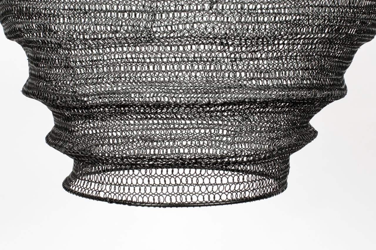 Warten Sie, bis es dunkel ist! Dann zeigt die Hängelampe LENA L ihre besonderen Qualitäten. Das Licht wird wie wie durch ein Gespinst hindurch abgemildert und übt auf die Umgebung einen beruhigenden Effekt aus. Dieses Gespinst hat aber nicht das Zerbrechliche eines Spjnnennetzes, es besteht nämlich aus Metall, das Schwarz lackiert wurde. Nerven wie Drahtseile hat Lena L also und bleibt Ihnen auf Jahre treu ergeben.