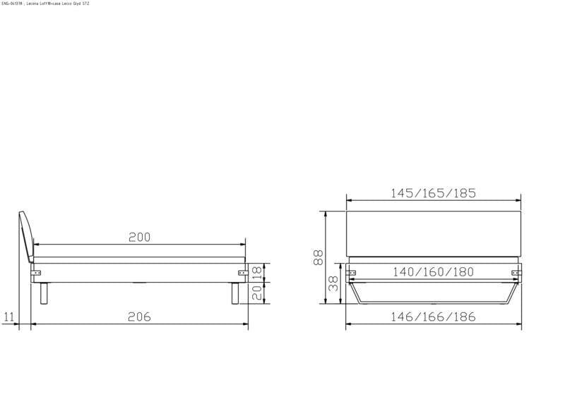 • Oberkante Bettseite/Rahmen: 38 cm (bei 20 cm Fußhöhe)