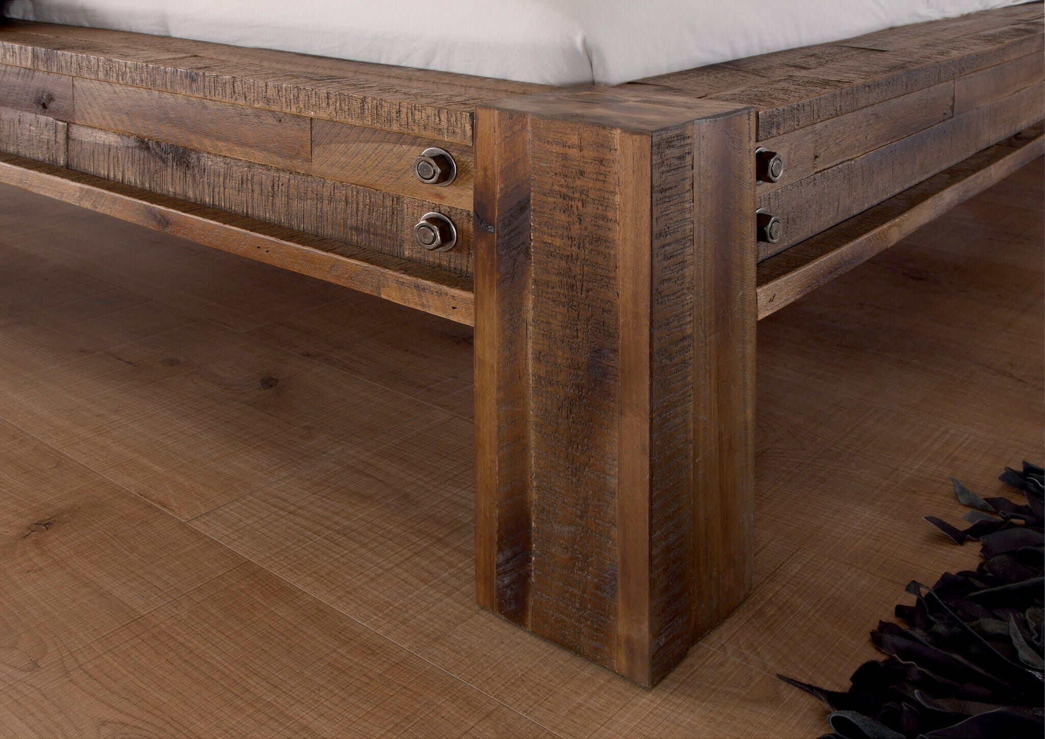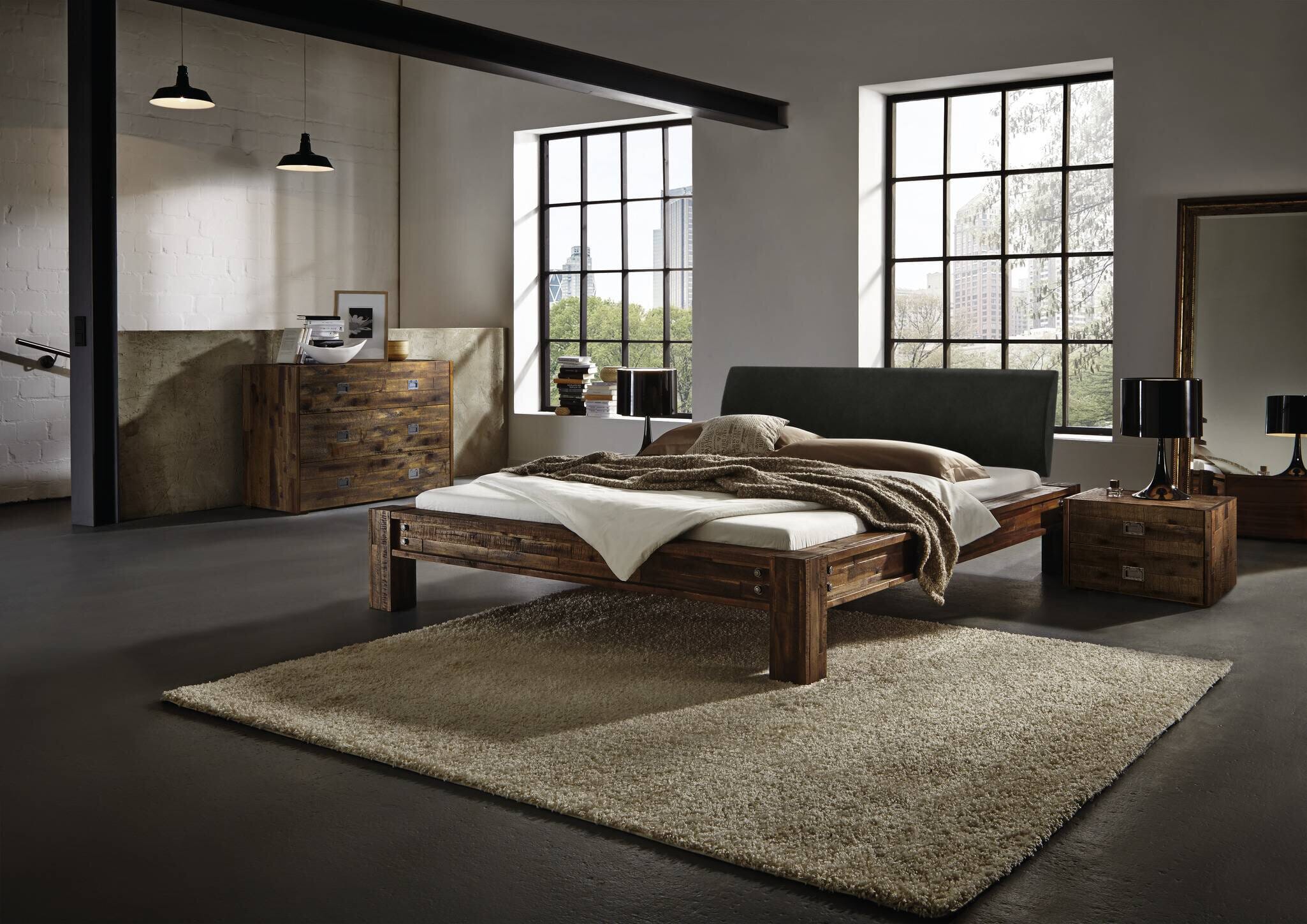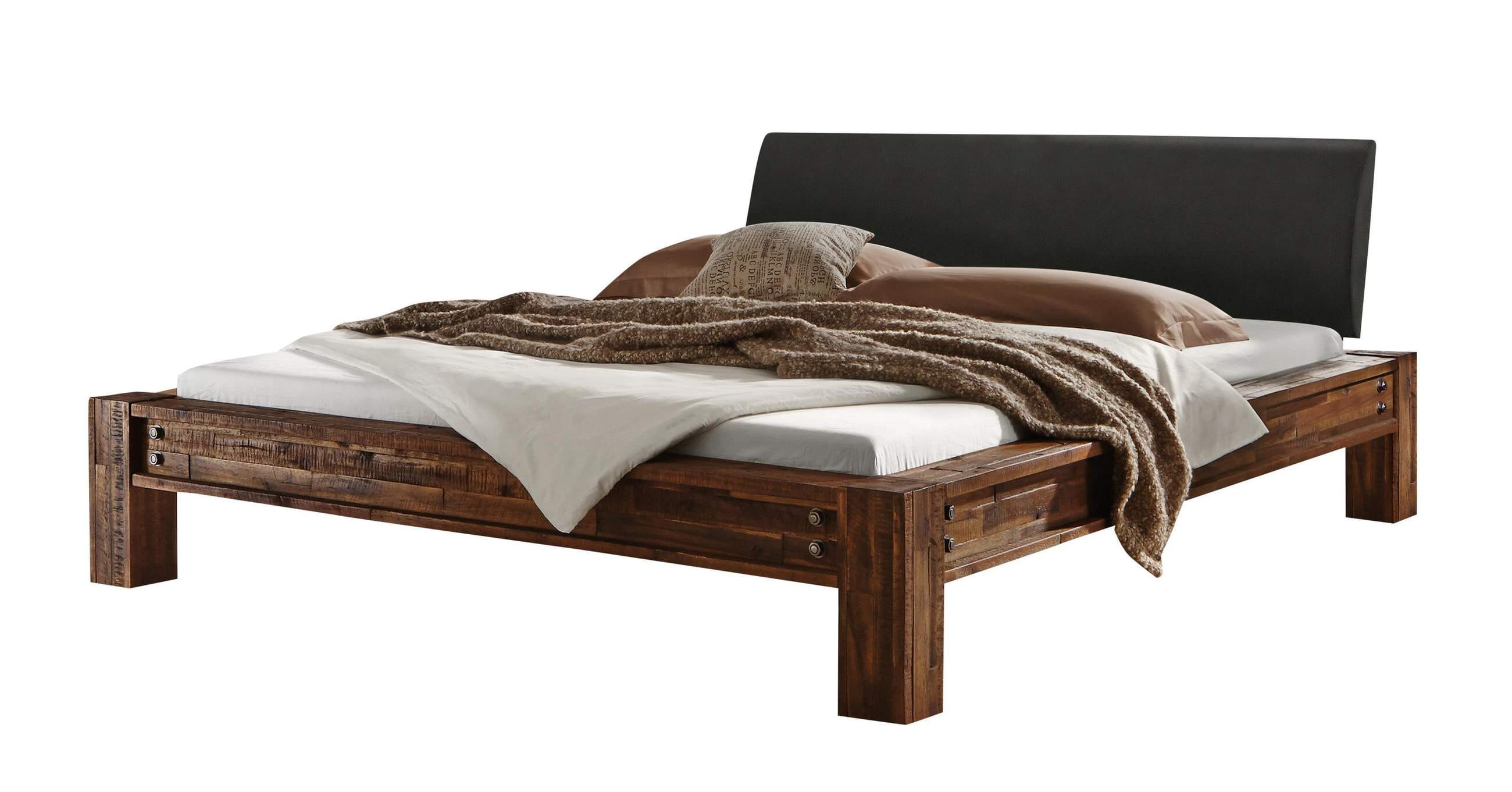 Industrie Balkenbett SAN FELIPE von Hasena 140x200 cm Akazie Brown