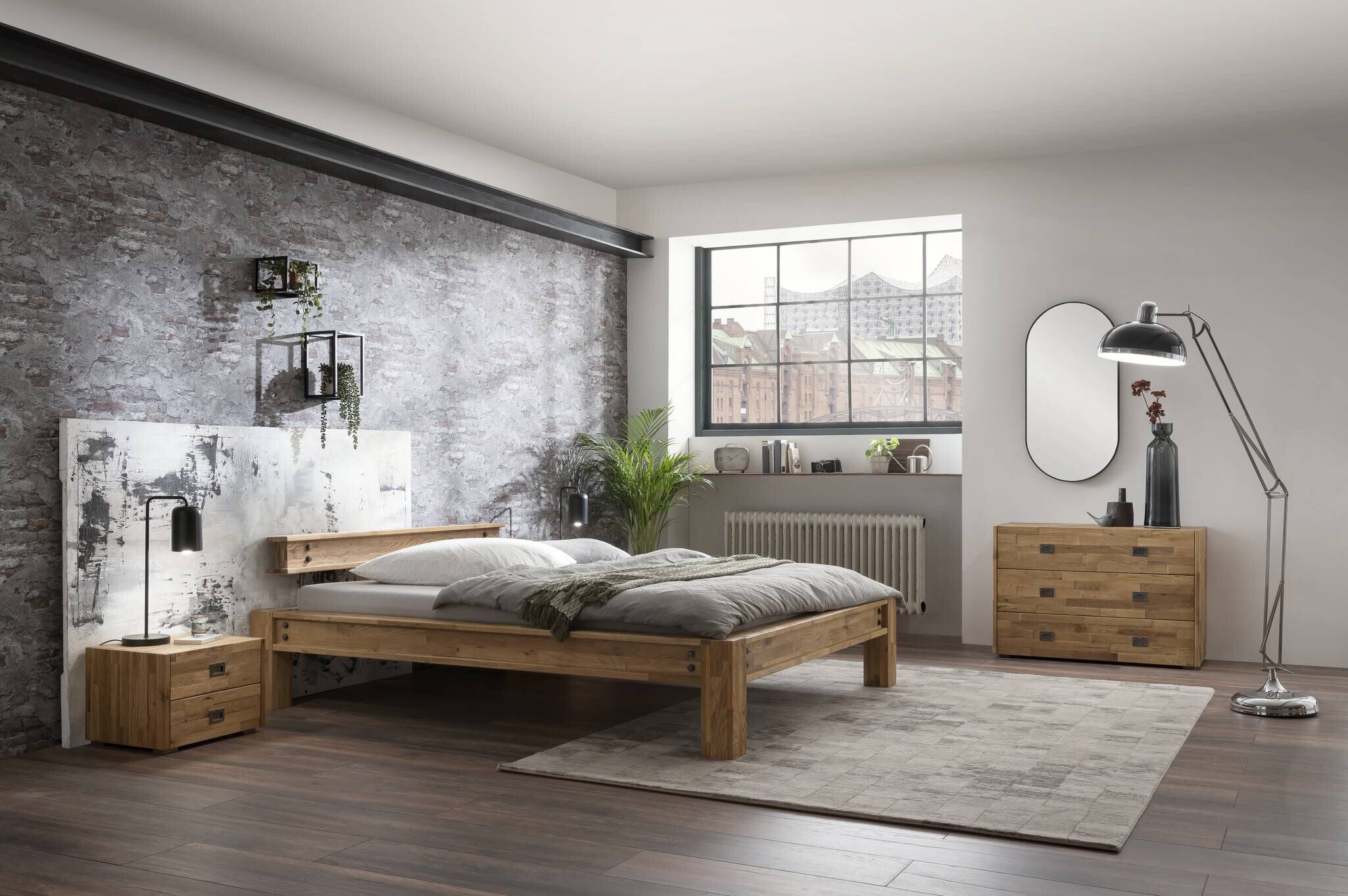 Entdecken Sie das perfekte Zusammenspiel von Minimalismus und Natürlichkeit. Das Massivholzbett San Sebastian von Hasena in Eiche uniq clear bietet nicht nur eine robuste Schlafbasis, sondern vereint durch die Nachahmung von Stahlträger-Profilen, die sichtbaren Metall-Verschraubungen und den hellen, natürlichen Farbton, die besten Eigenschaften zweier sehr beliebter Einrichtungsstile: die Leichtigkeit und Gemütlichkeit des Skandi Style und den rauen und urbanen Touch des Factory Style.