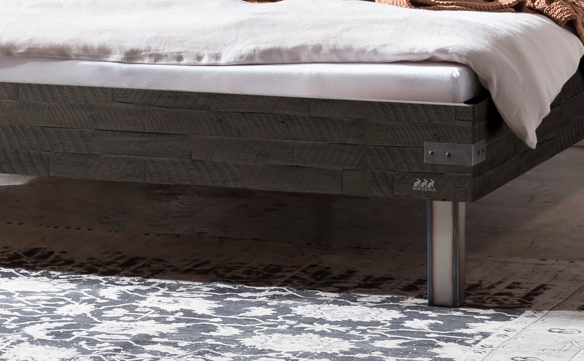 Hasena Massivholzbett DUNO 90x200 cm Vintage Grau Höhe Fuß 20 cm