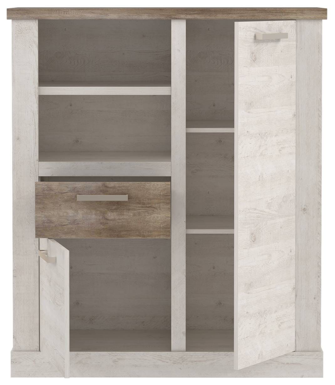 Highboard DURO, 2 trg. und 1 Schublade, in Pinie weiß antik von Forte