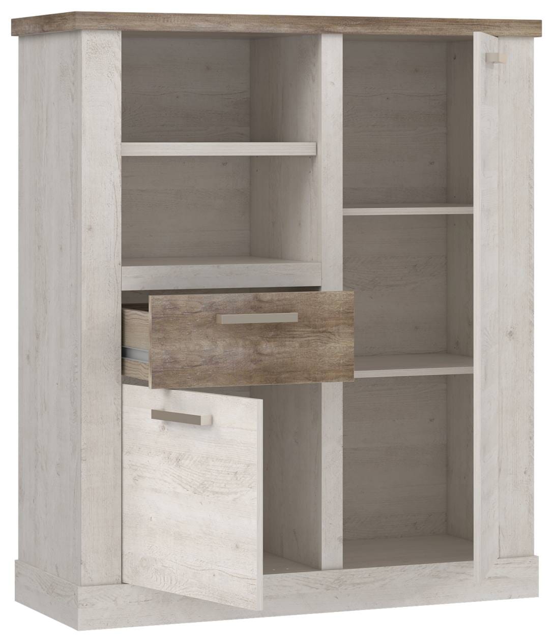 Freuen Sie sich auf ein spannungsreiches Design und ein reiches Innenleben - dieses Highboard wird überall ein gern gesehener Gast sein!