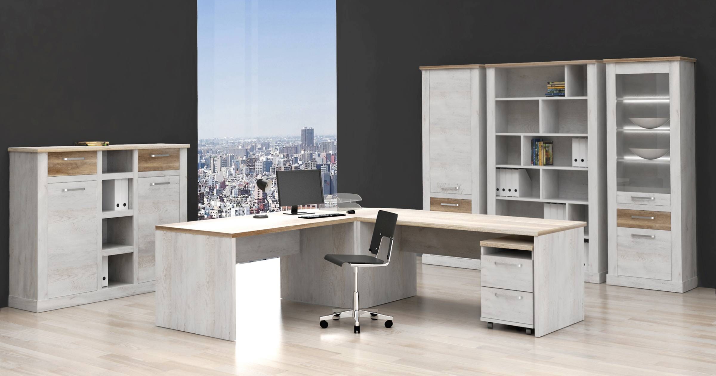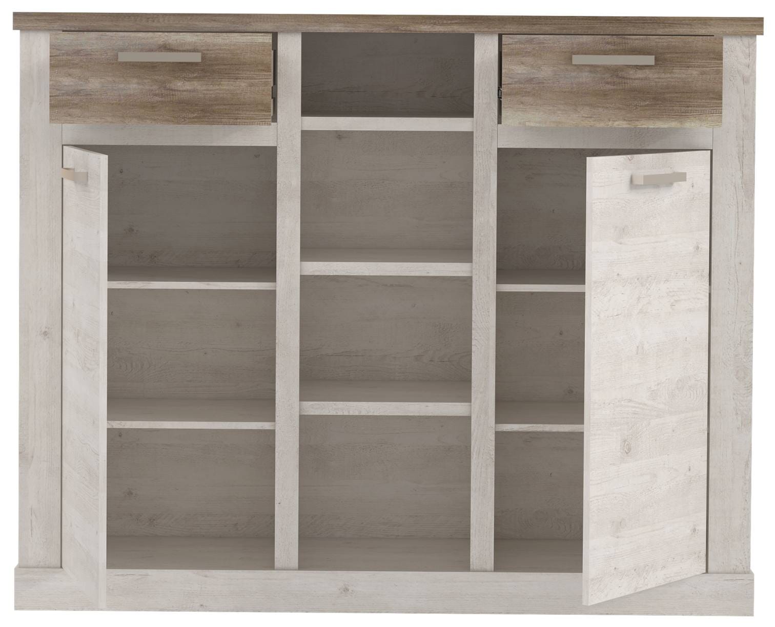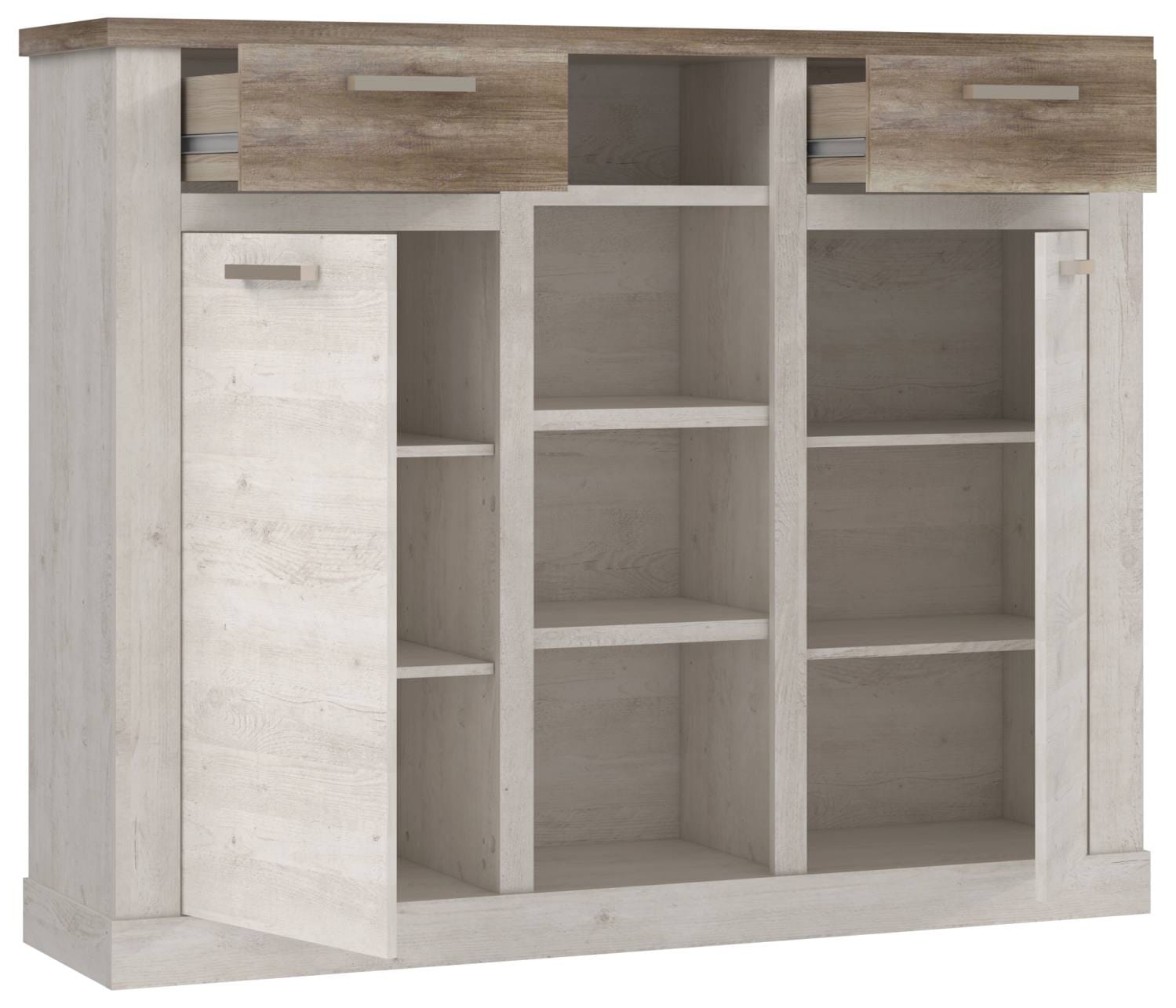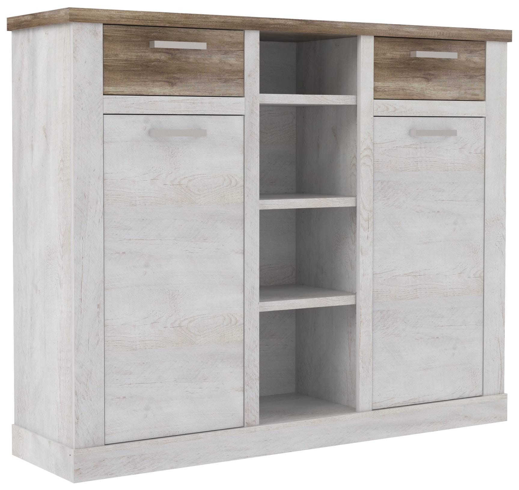 Highboard DURO, 2 Türen, 2 Schubladen, Optik Pinie weiß antik