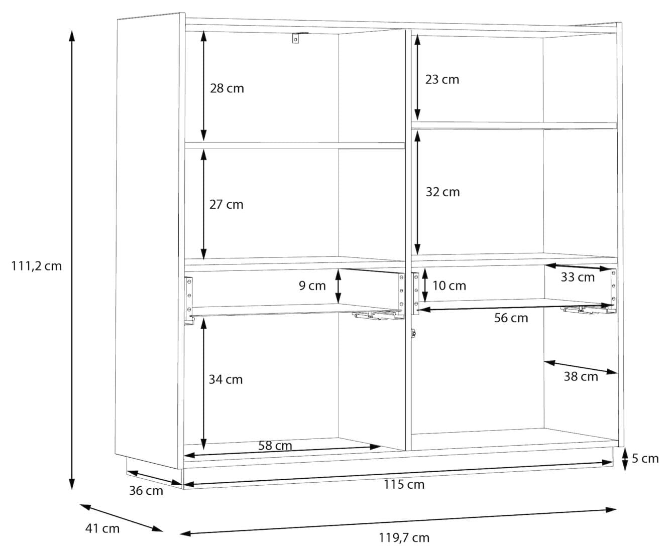 - Maße: B/H/T 119,7 x 111,2 x 41 cm
