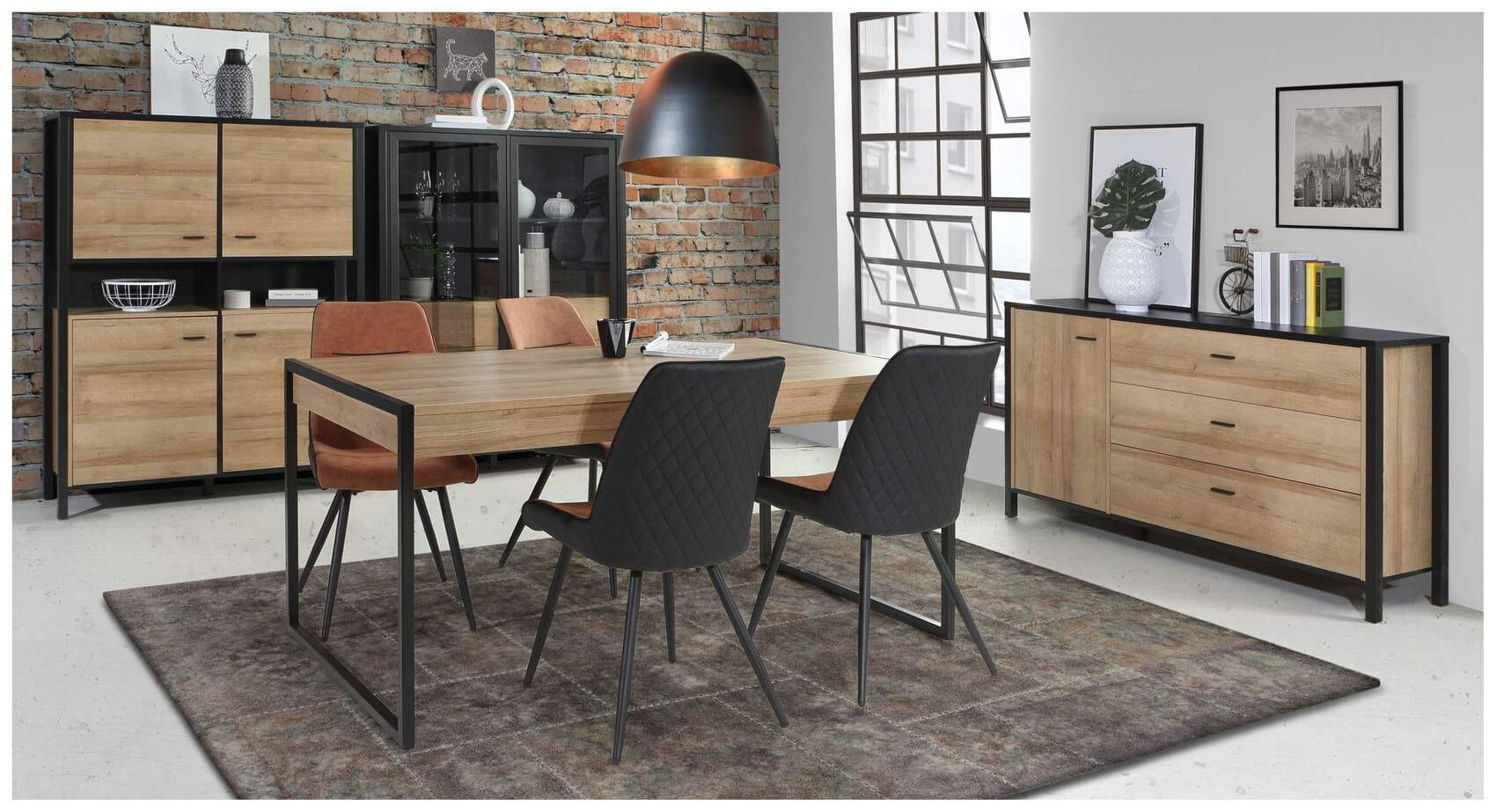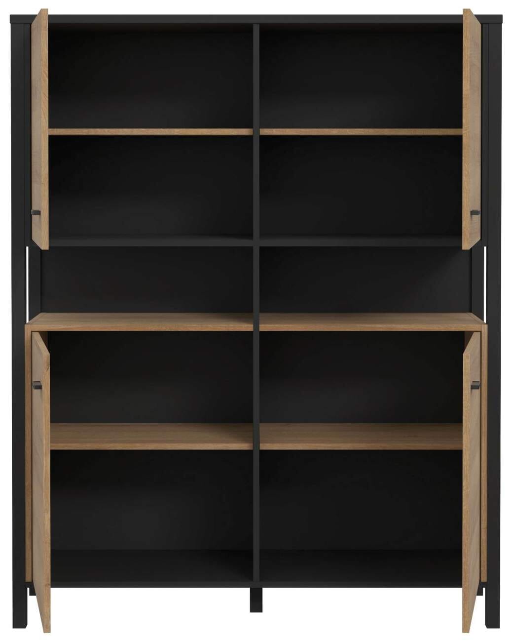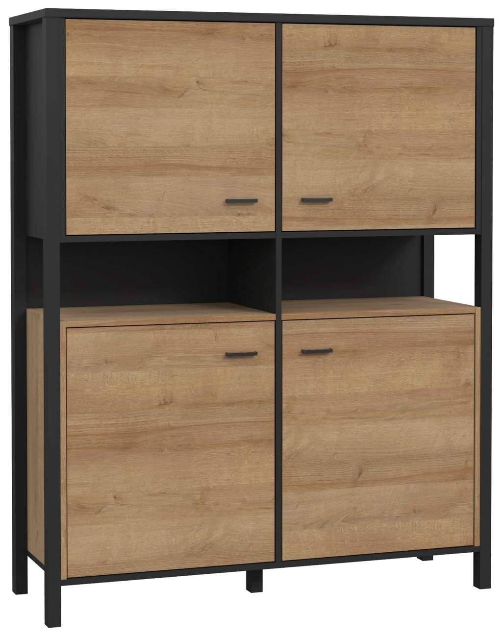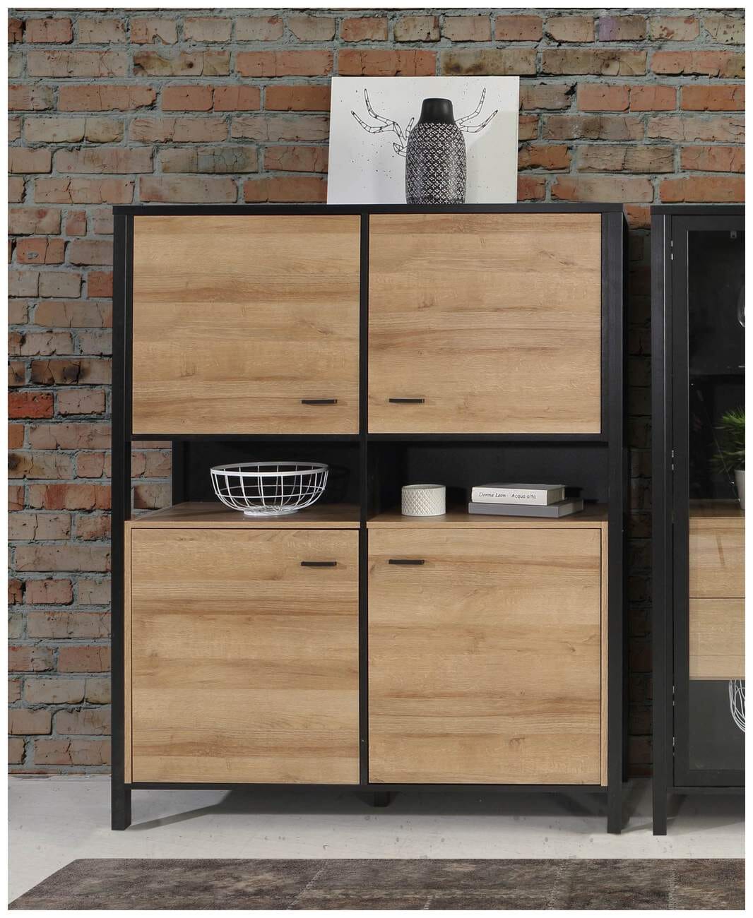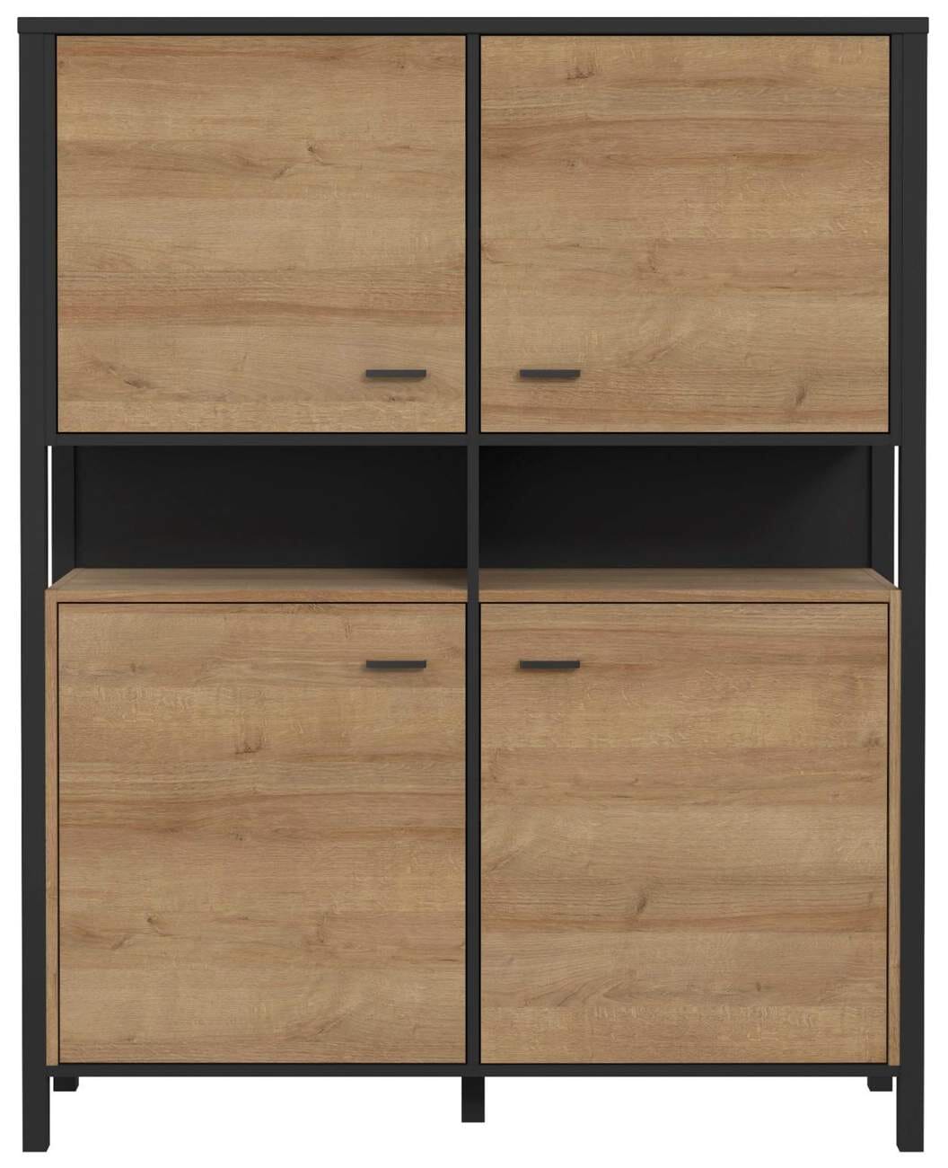 Highboard Schrank HIGH ROCK 4-trg. Riviera Eiche Optik / Schwarz Forte