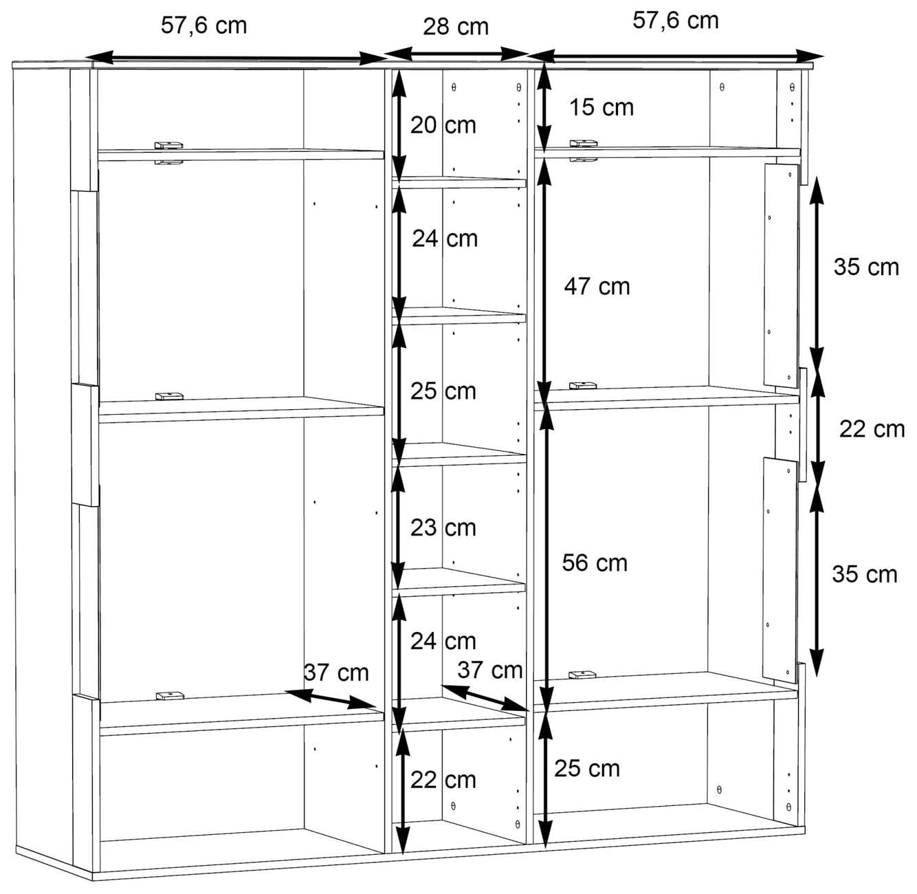 - mittig: 4 Fachböden verstellbar, 1 Fachboden fest