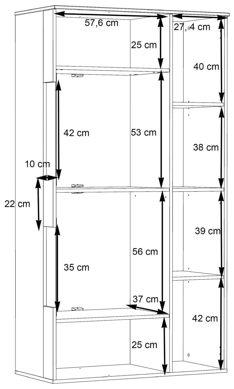 - rechts: 2 Fachböden verstellbar, 1 Fachboden fest