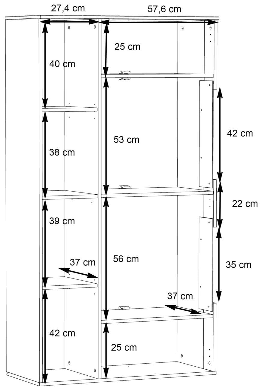 - rechts: 2 Fachböden verstellbar, 1 Fachboden fest