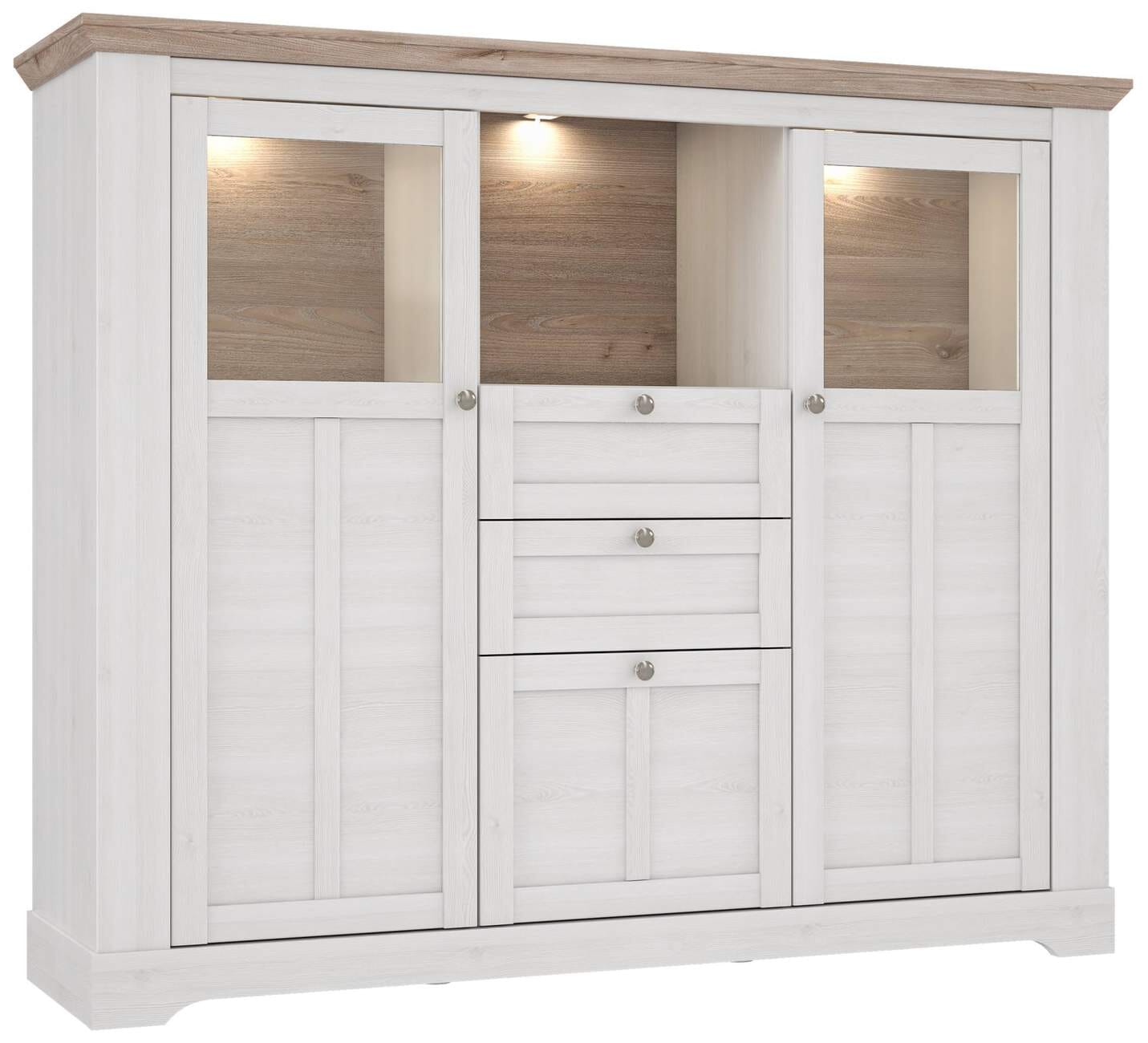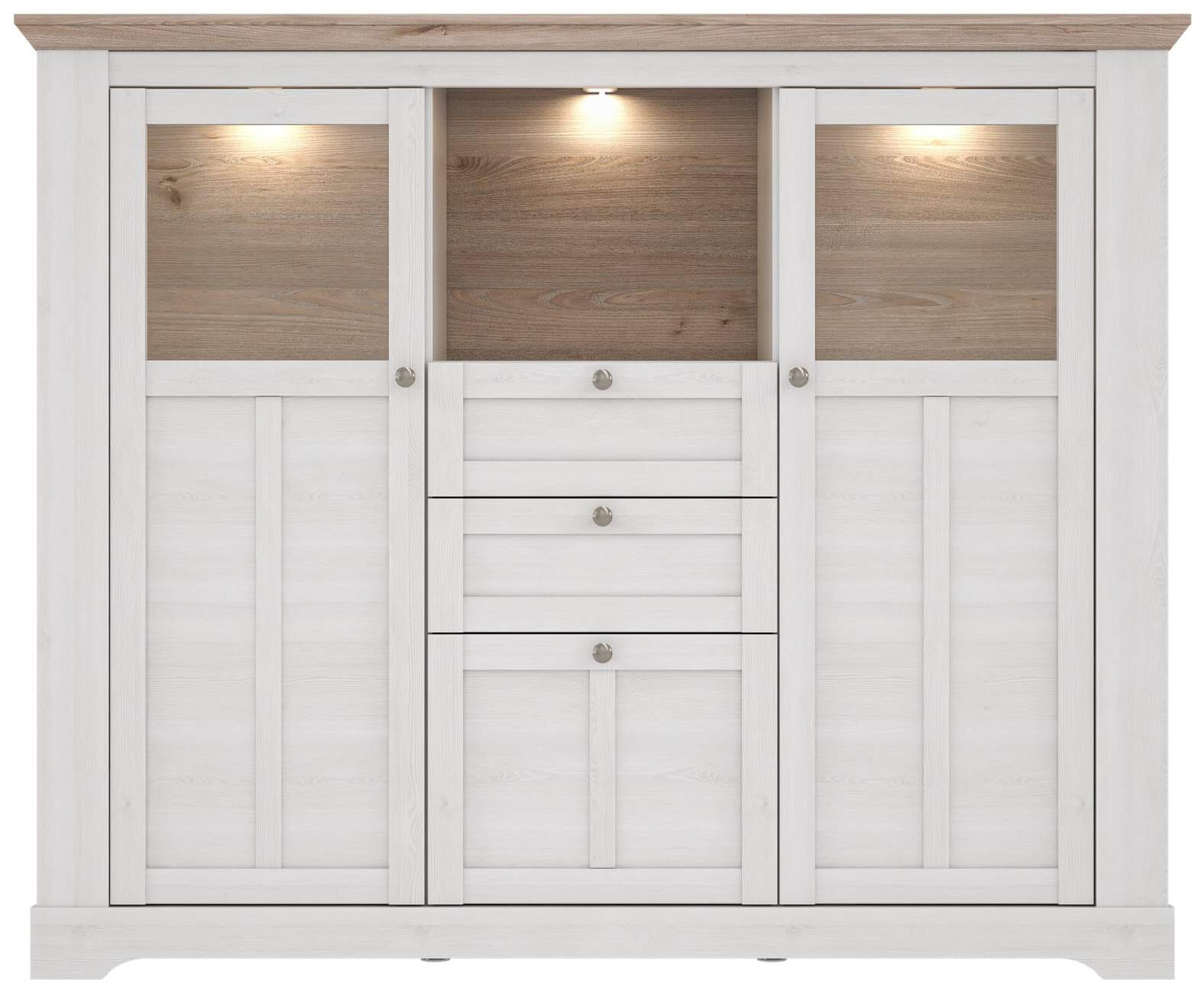 Highboard Vitrine ILOPPA 3-trg. 2 Schubladen Optik: Schneeeiche, Forte