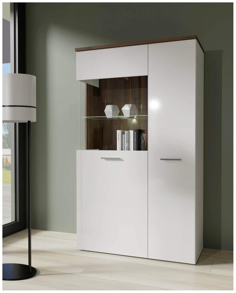 Highboard Vitrine RAIDON Optik: Weiß Walnuss Front Highgloss von Forte