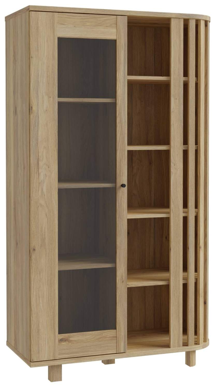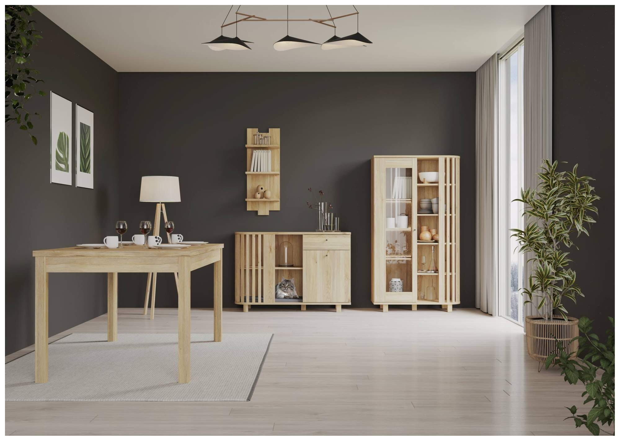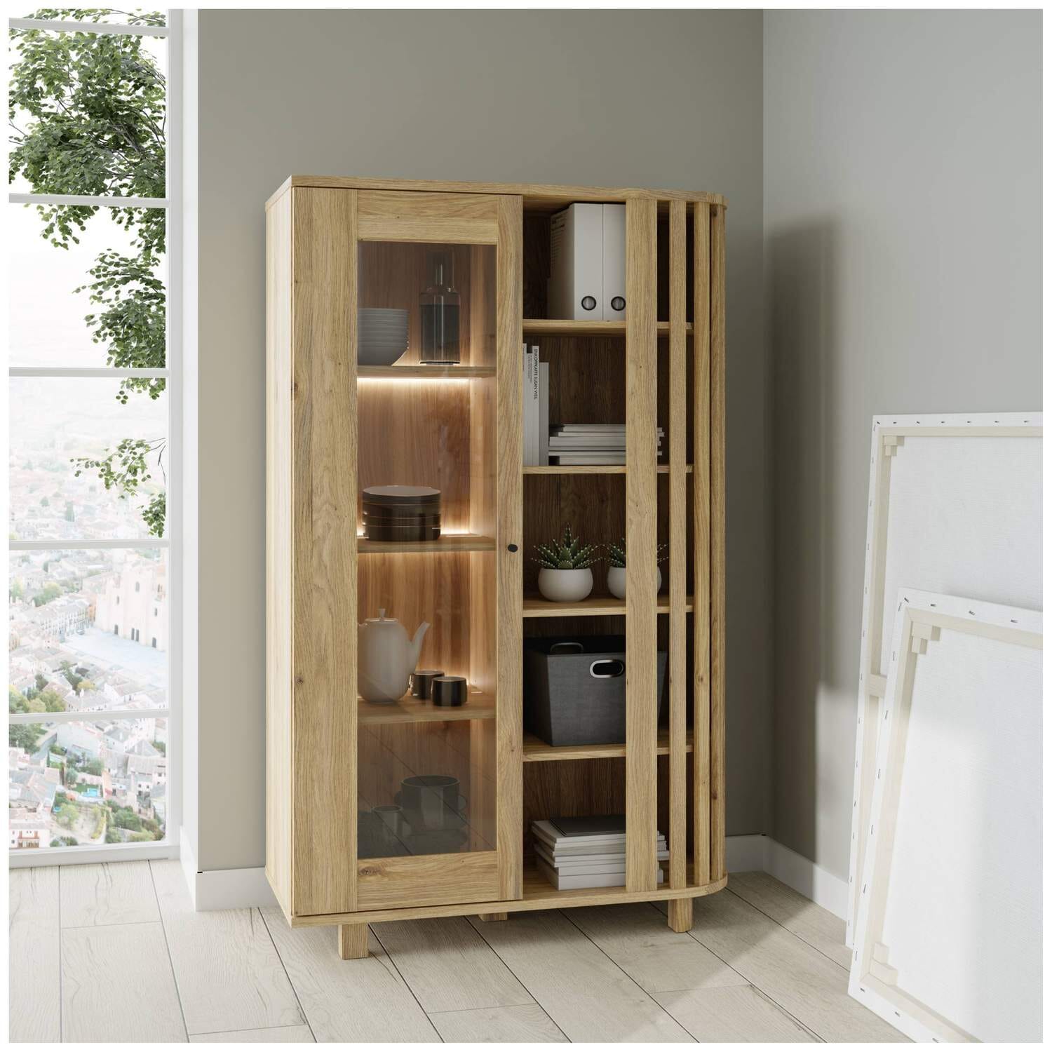 Sie haben mit Hilfe dieses schicken Möbelstücks auch jede Menge Stauraum, mit Glastür und ohne. Und dass sich die Mauvella Eiche Nachbildung eine gewisse Wärme in Ihre vier Wände bringt, haben Sie bestimmt schon erahnt. Die senkrechten Lamellen im Frontbereich lockern das Erscheinungsbild auf und verwehren nur teilweise den Blick auf das Dahinterliegende. Lassen Sie dieses Prachtstück Einzug bei sich halten. Dann haben Sie jeden Tag etwas zum Bewundern.
