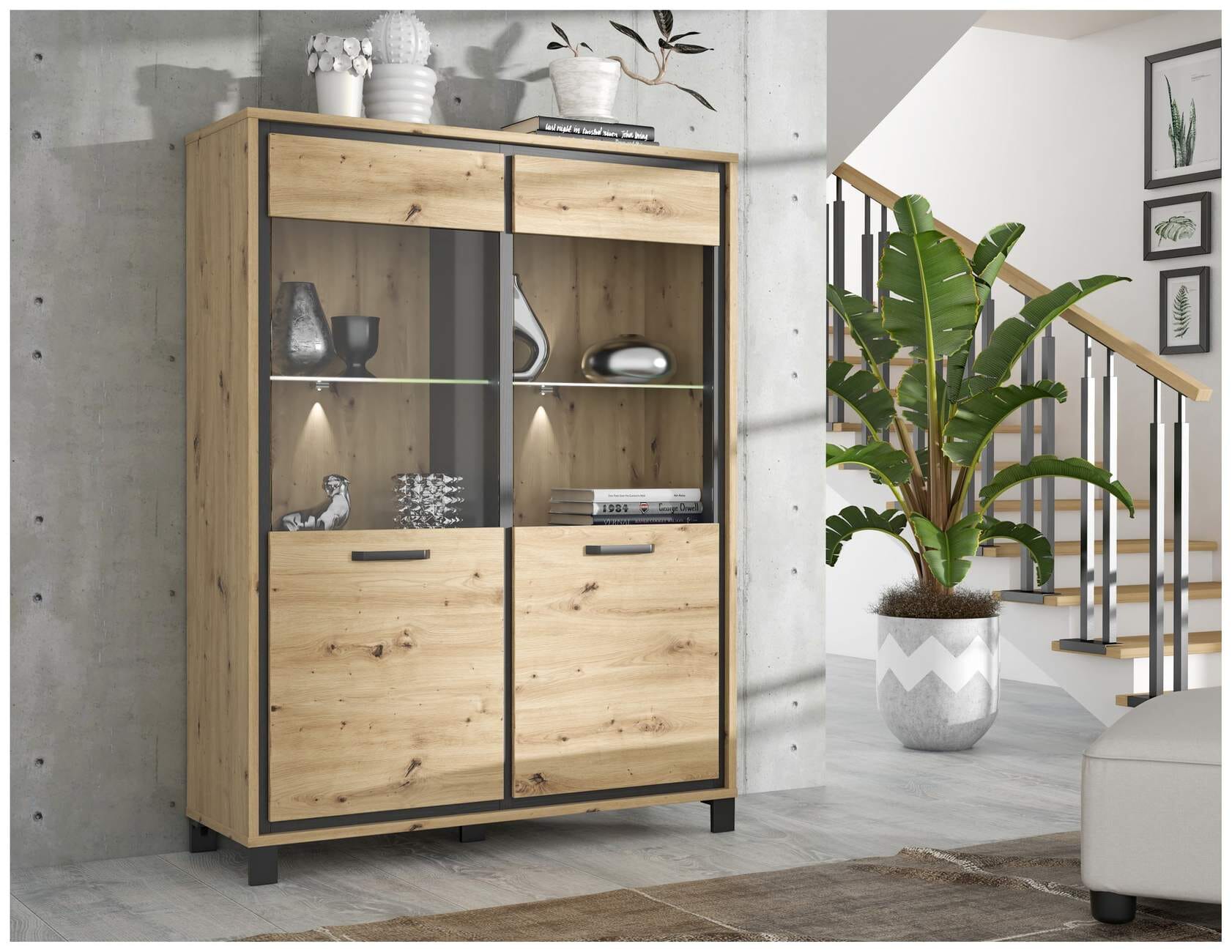 Highboard Vitrine TRONDHEIM V623 Artisan Eiche / Schwarzeiche Optik