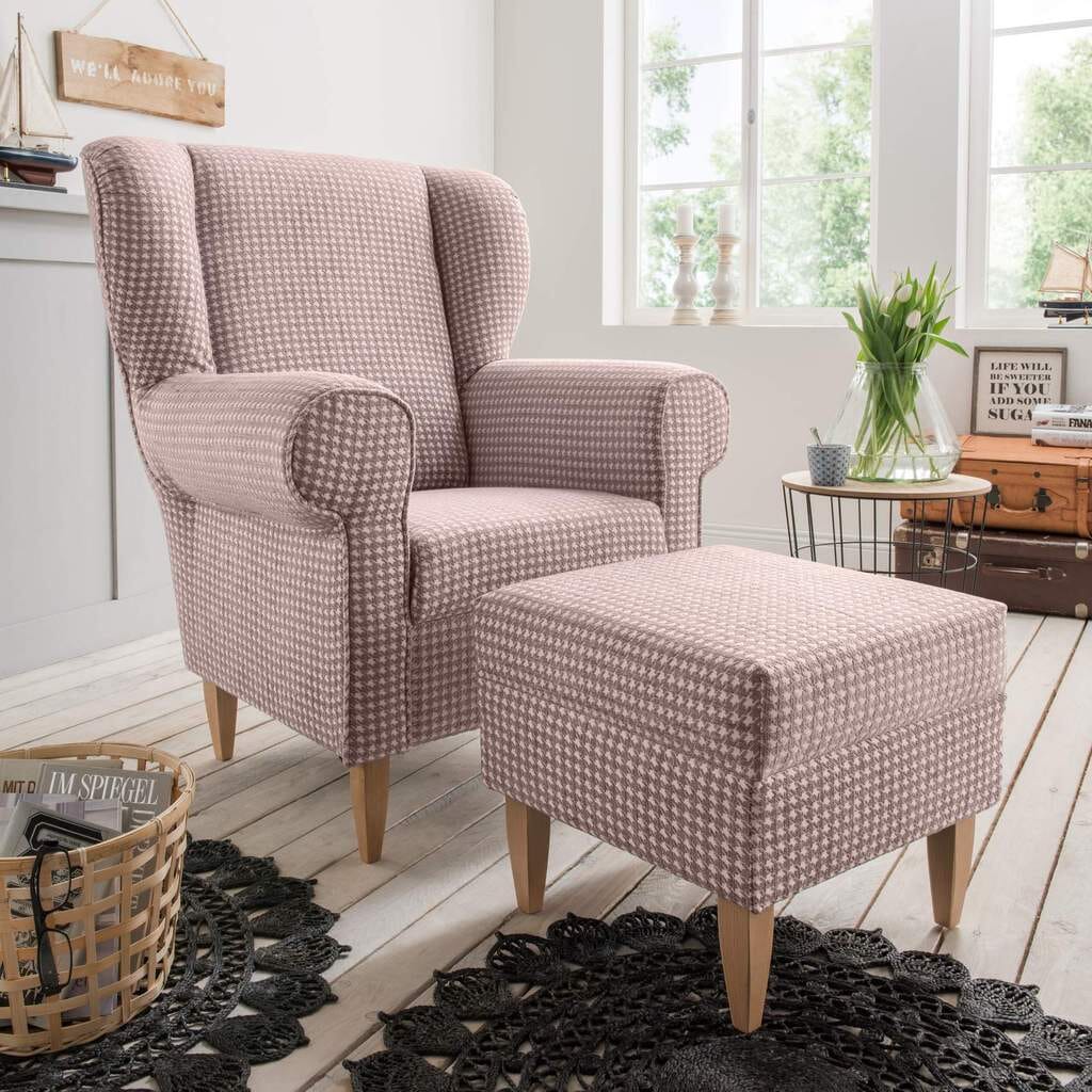 Hocker für Ohrensessel AVERSA Stoff Talento Flamingo