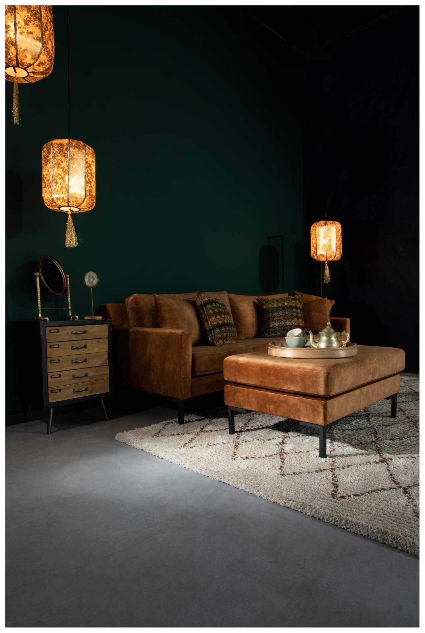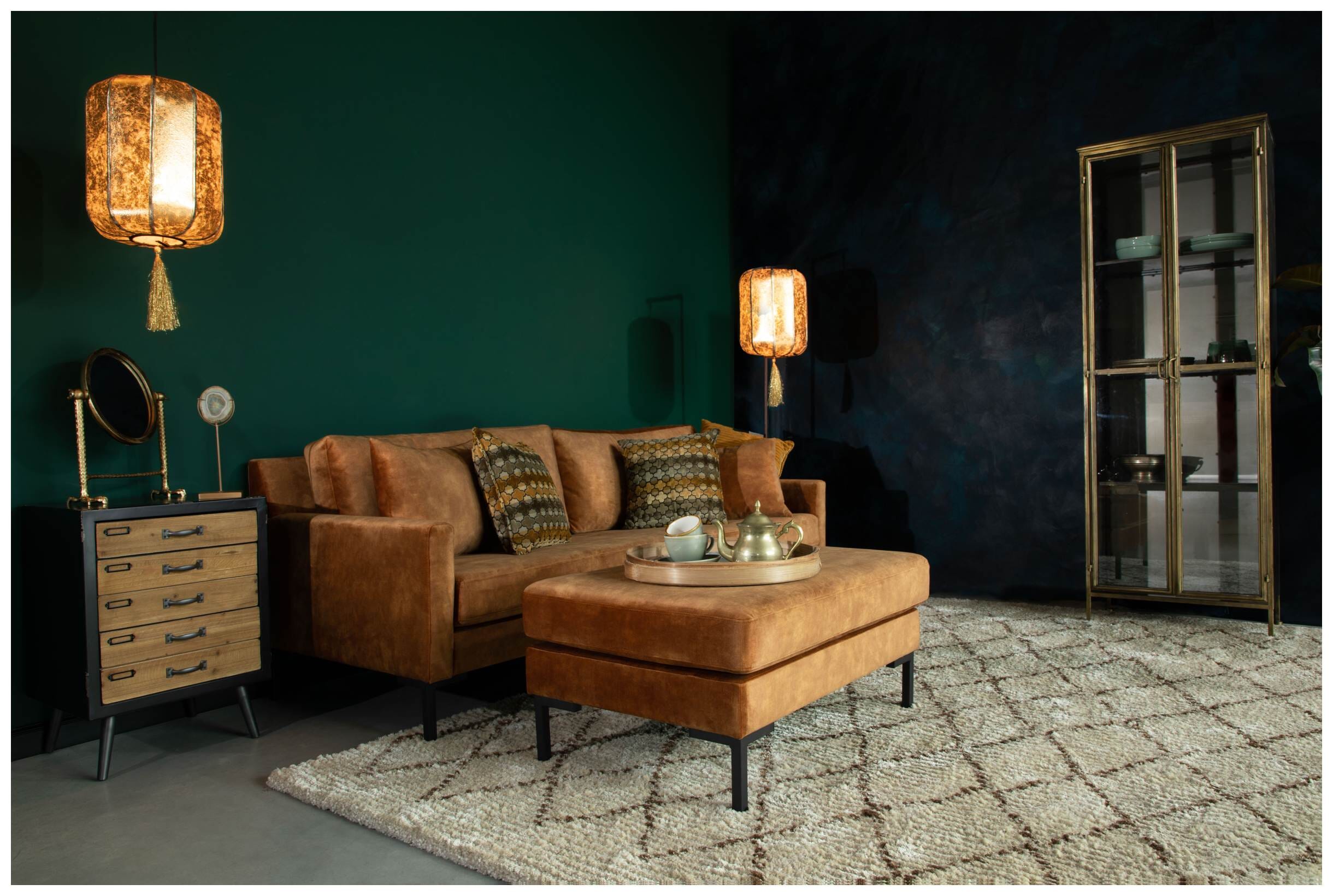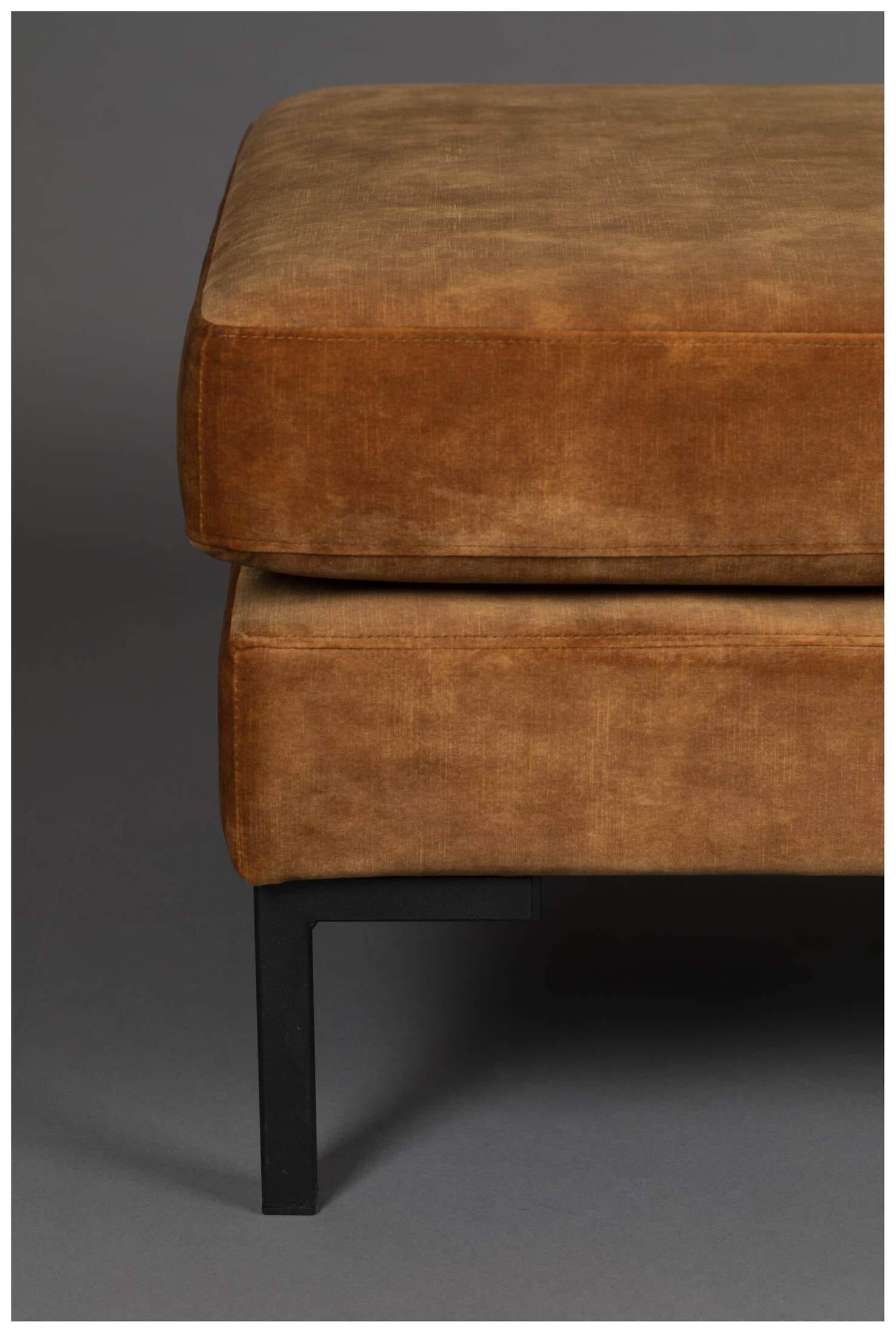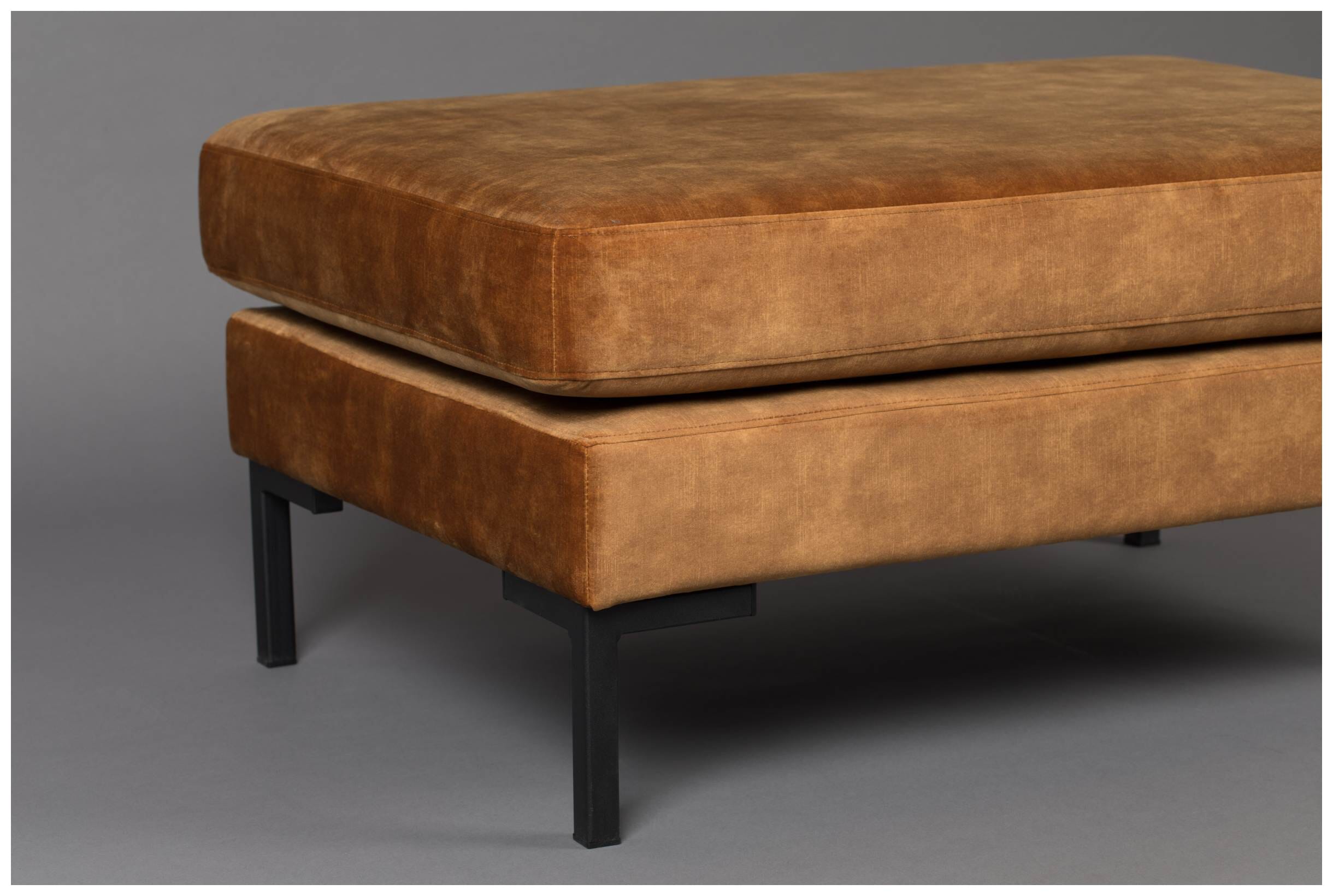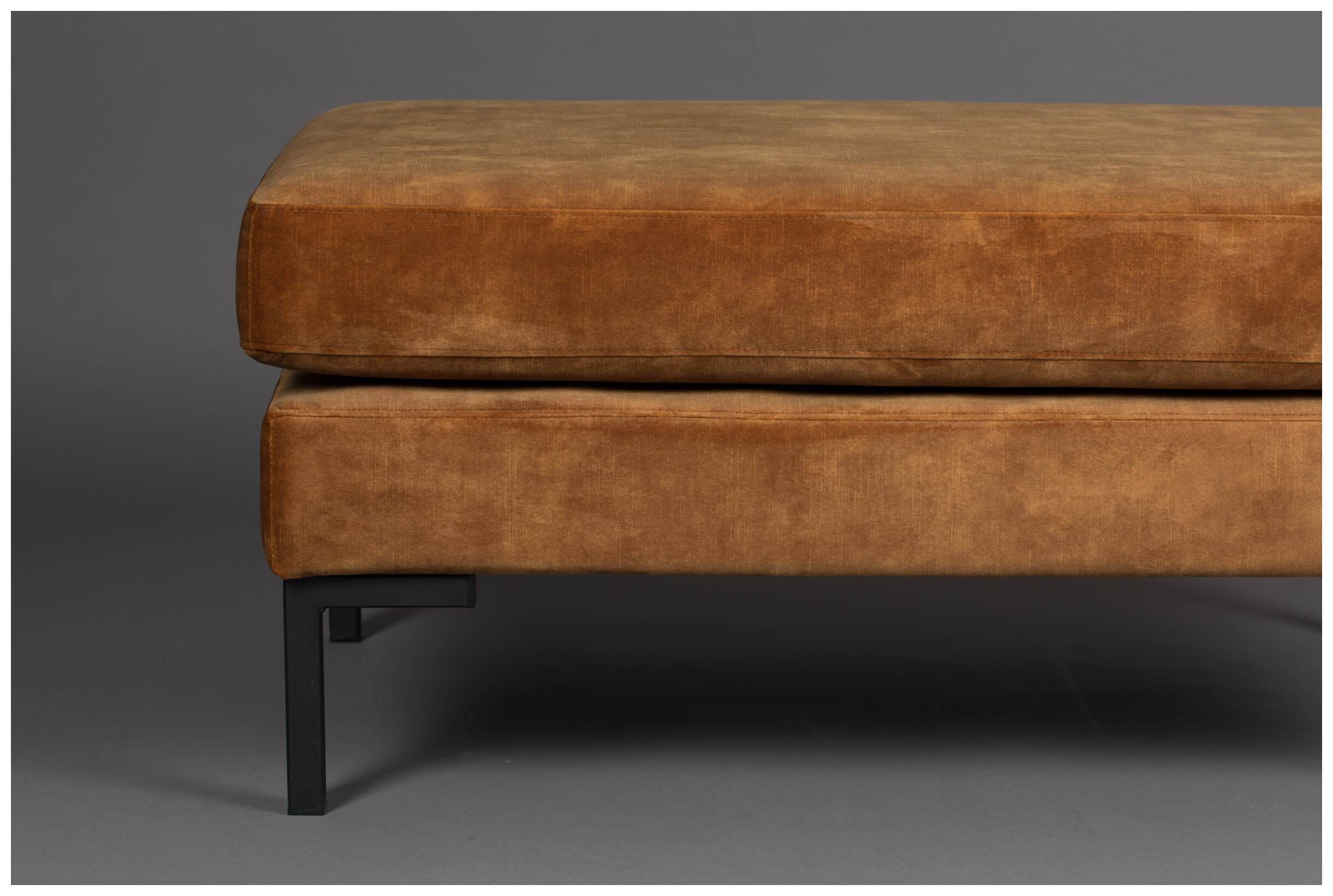Formschön elegant mit einem fein glänzenden Samtbezug präsentiert sich der Hocker HOUDA von DUTCHBONE. Durch seine besonders feinen Bezüge im Farbton Caramel und das edle Design der modernen schwarzen Beine aus Metall passt das schicke Sofa in Ihr modern eingerichtetes Wohnzimmer.