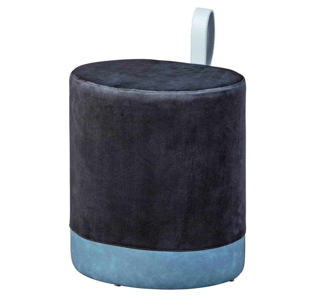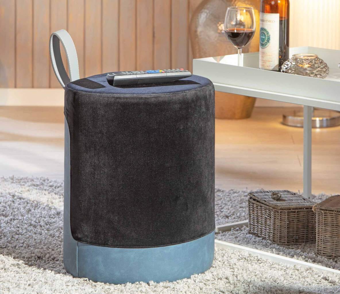 Hocker Polsterhocker OSANE Samtbezug Schwarz Blau