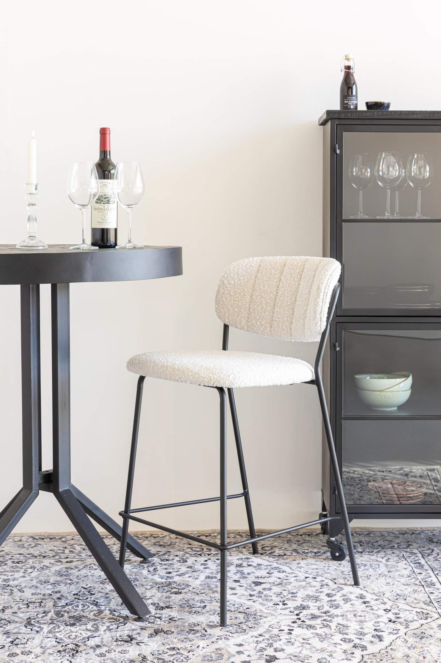 Hocker Tresenhocker JOLIEN BLACK BOUCLÉ WHITE