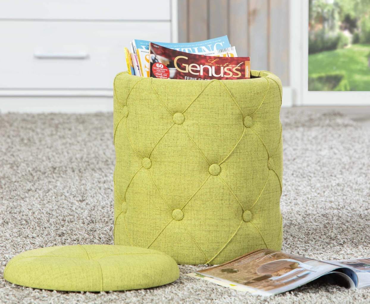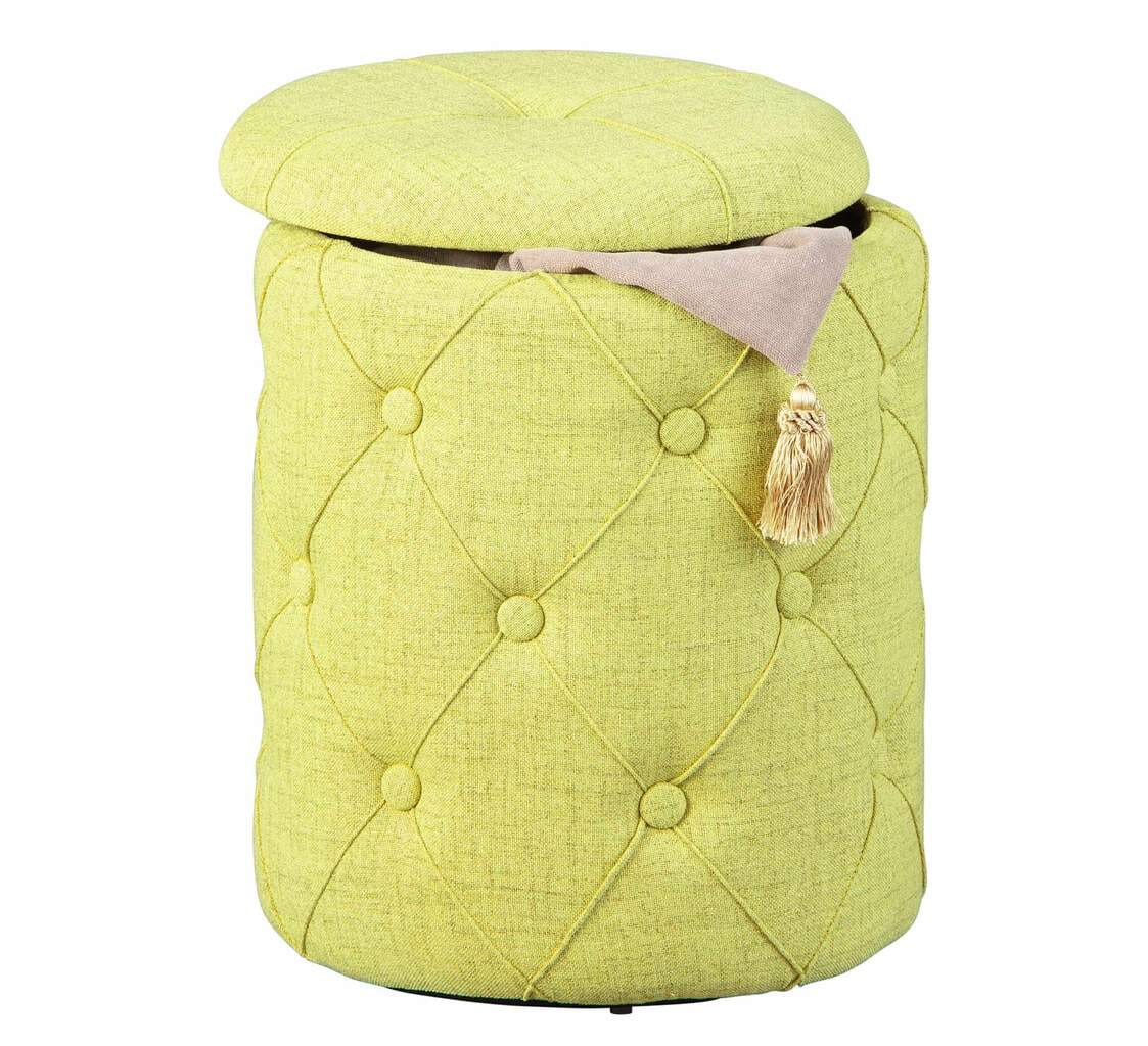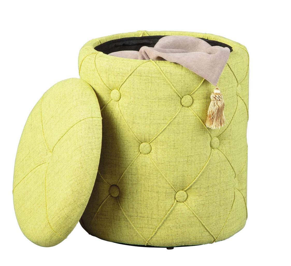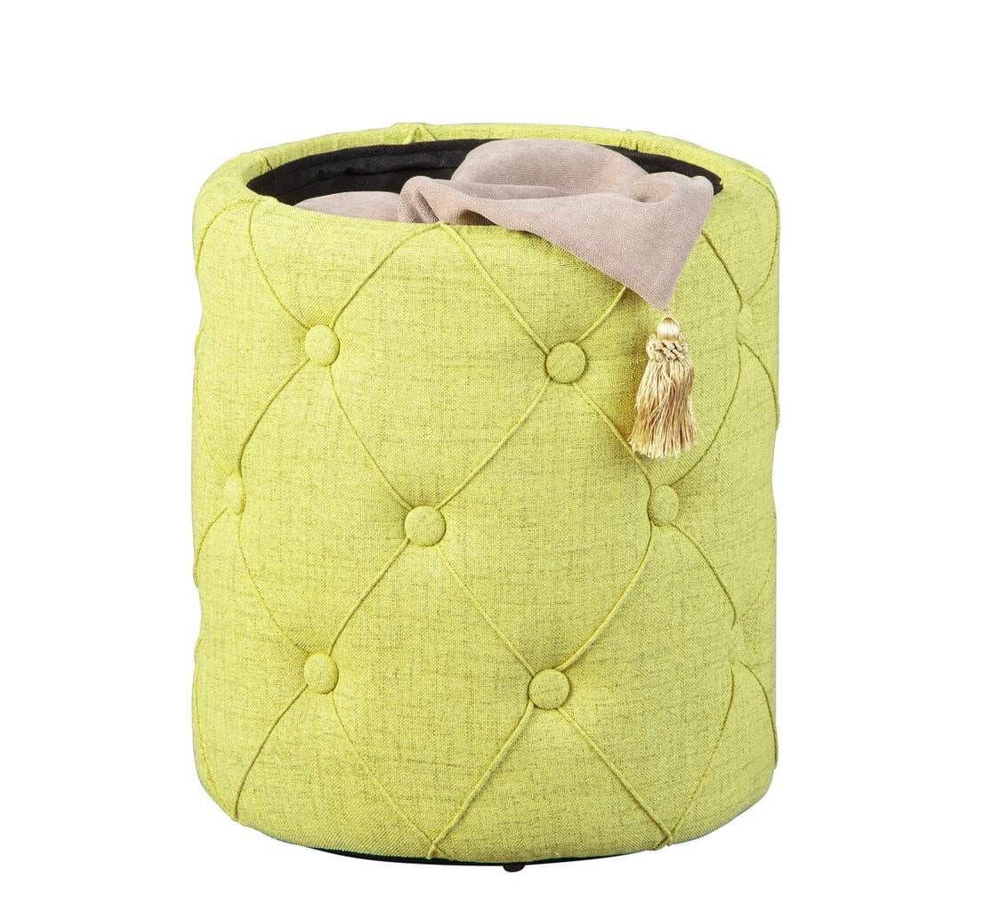 Kleinmöbel mit Doppelfunktion sind in kleinen Wohnungen ausgesprochen praktisch. Mit dem Hocker YAPAK Polsterhocker mit Stoffbezug in Grün und Knopfheftung stellen wir Ihnen einen formschönen und überaus praktischen Begleiter Ihres Schlafzimmers vor. Der Hocker dient Ihnen dabei nicht nur zum Sitzen, sondern ebenfalls als Stauraum für Schmutzwäsche oder andere Dinge. Besonders praktisch ist bei dem Hocker der Sitz, da er gleichzeitig als Deckel bzw. als Verschluss zum Befüllen der Aufbewahrung dient.