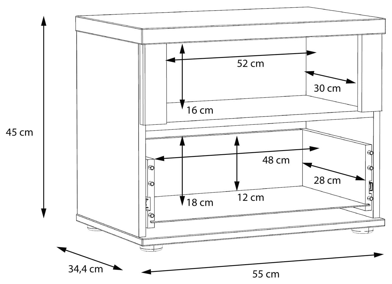 - Maße: B/H/T 55,4 x 45 x 34,4 cm