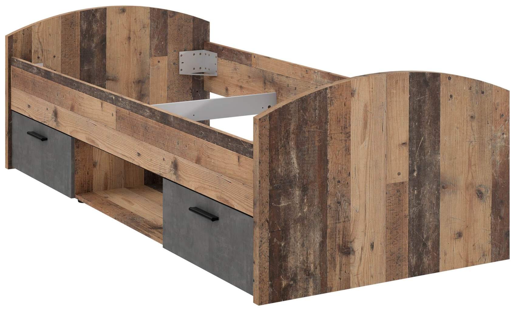 Jugendbett Einzelbell WINNIE, 90 x 200 cm, Optik: Old Wood Vintage