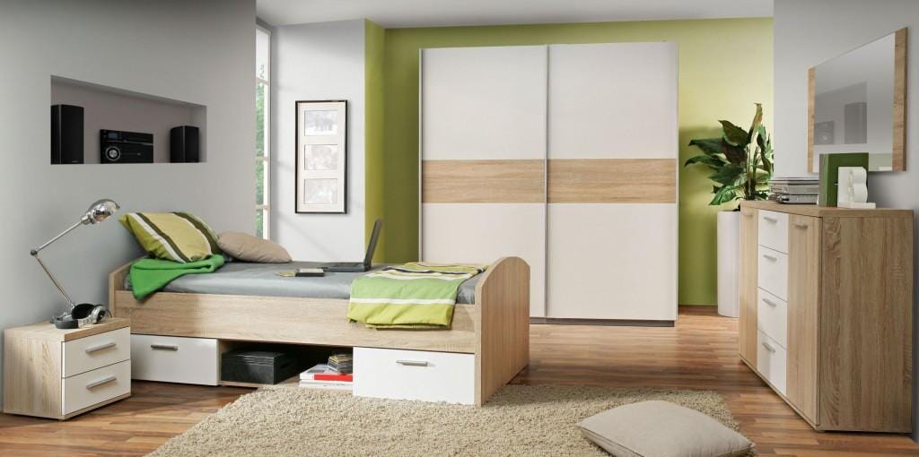 Jugendbett Winnie 90 x 200 cm, Sonoma Eiche mit Weiß kombiniert inkl. 2 Schubladen
