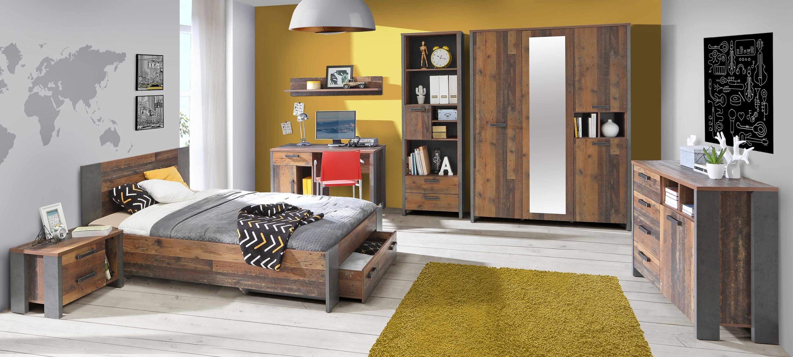 Jugendzimmer CLIF, 8-teilig Old Wood Vintage und dunkelgraue Betonoptik