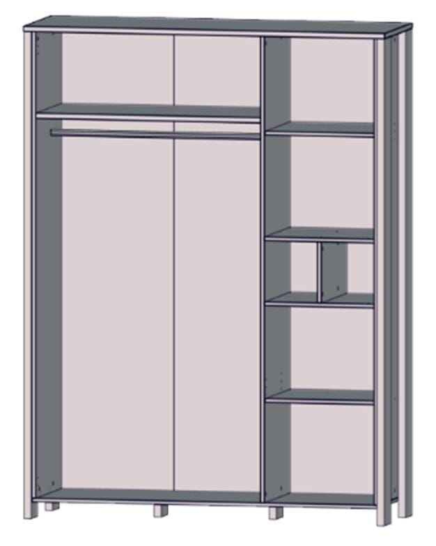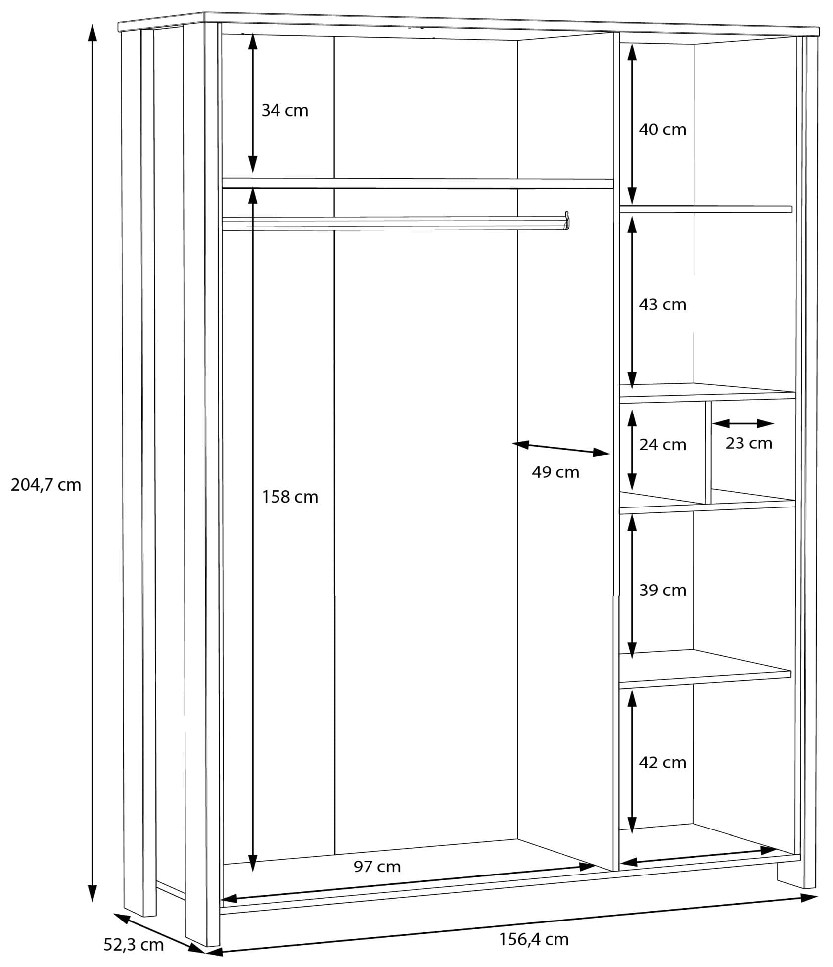 - Kleiderschrank: 2+2 Türen, B/H/T 156,4 x 205,4 x 52,3 cm
