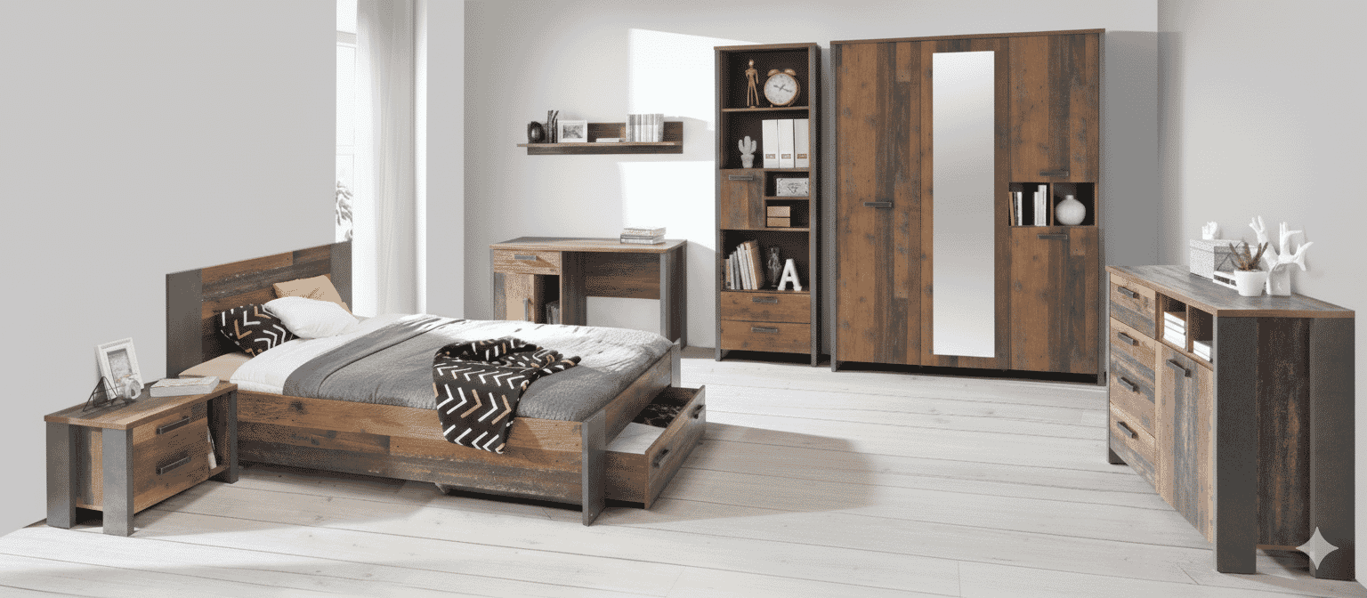 Jugendzimmer CLIF Komplettset 8-tlg. Optik: Old Wood Vintage von Forte