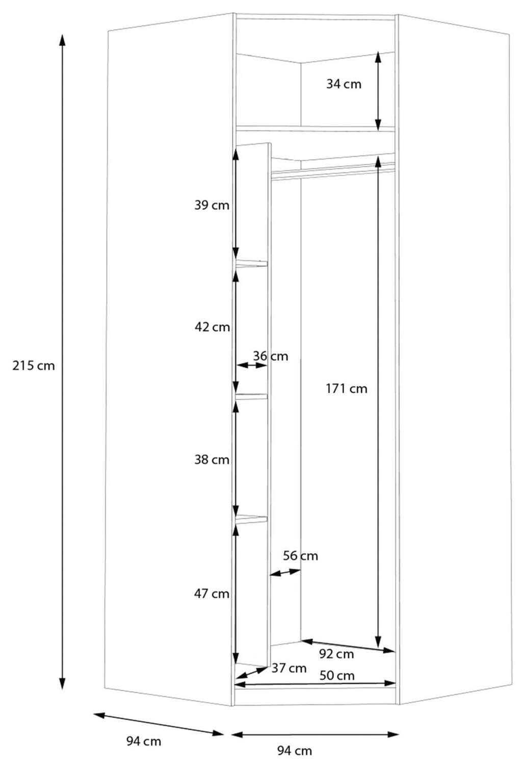 - Maße: B/H/T 94 x 215 x 94 cm