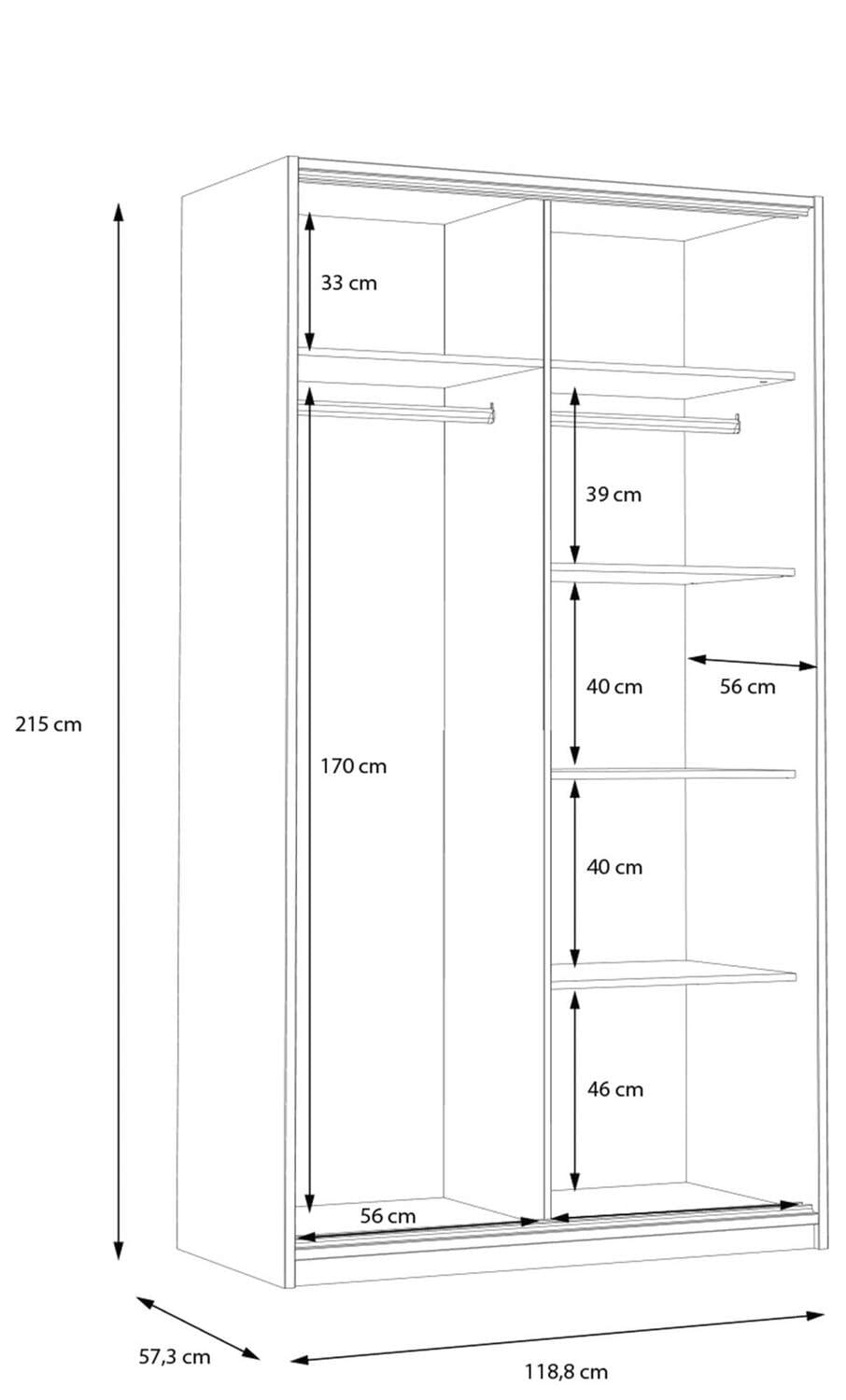 - Maße: B/H/T 118,8 x 215 x 57,3 cm