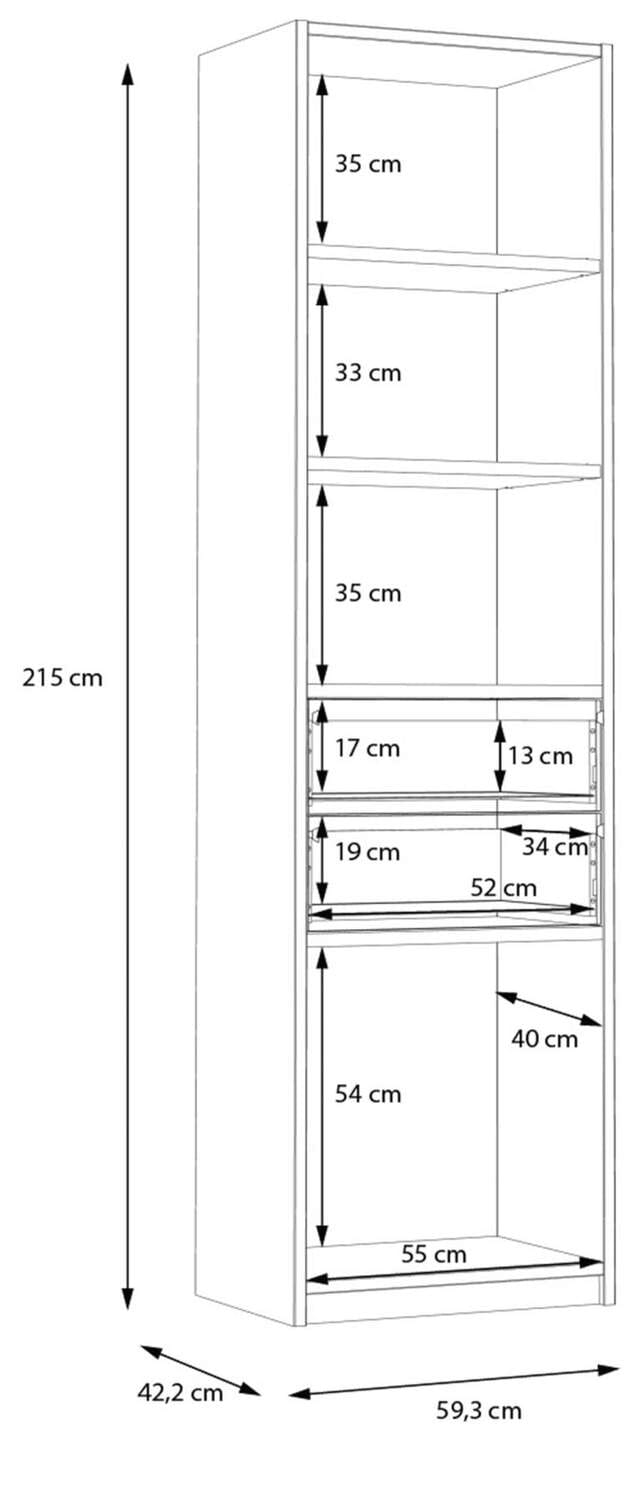 - Maße: B/H/T 59,3 x 215 x 42,2 cm