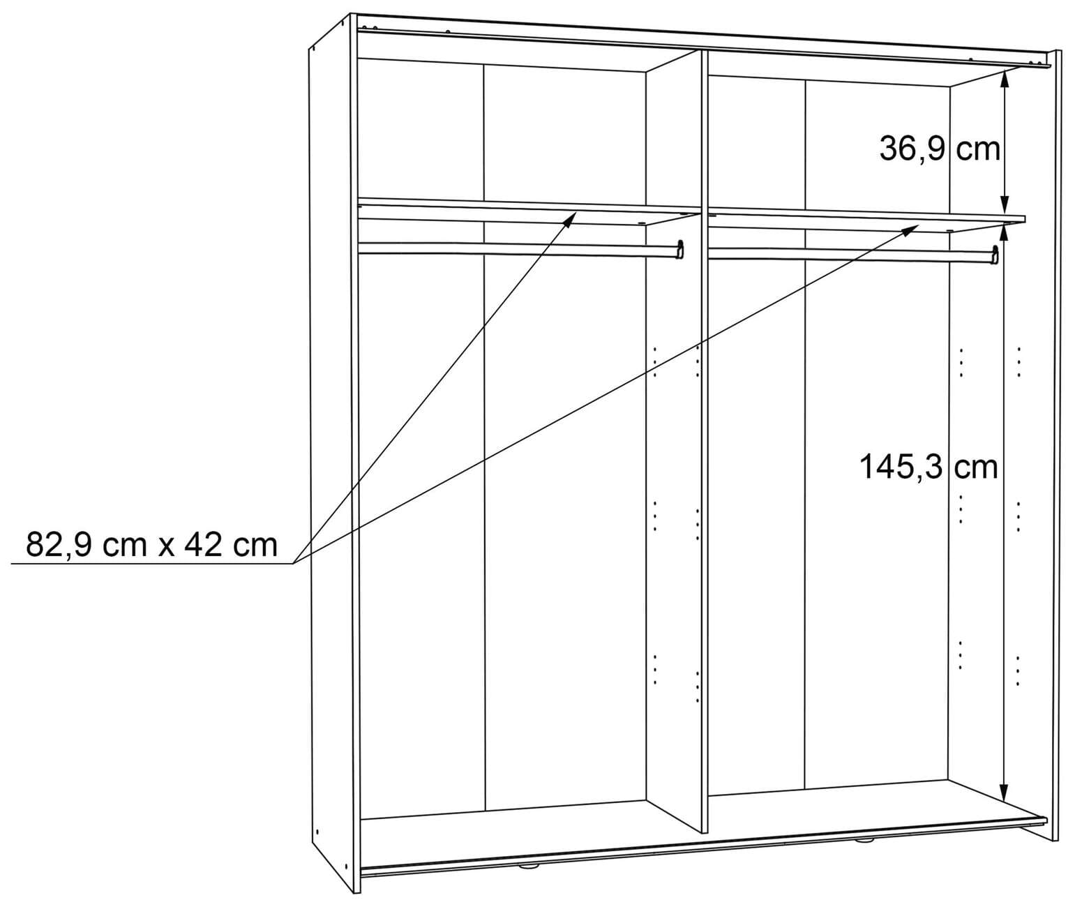 - Kleiderschrank Dederik: 2 Türen, B/H/T 170,3 x 190,5 x 61,52 cm