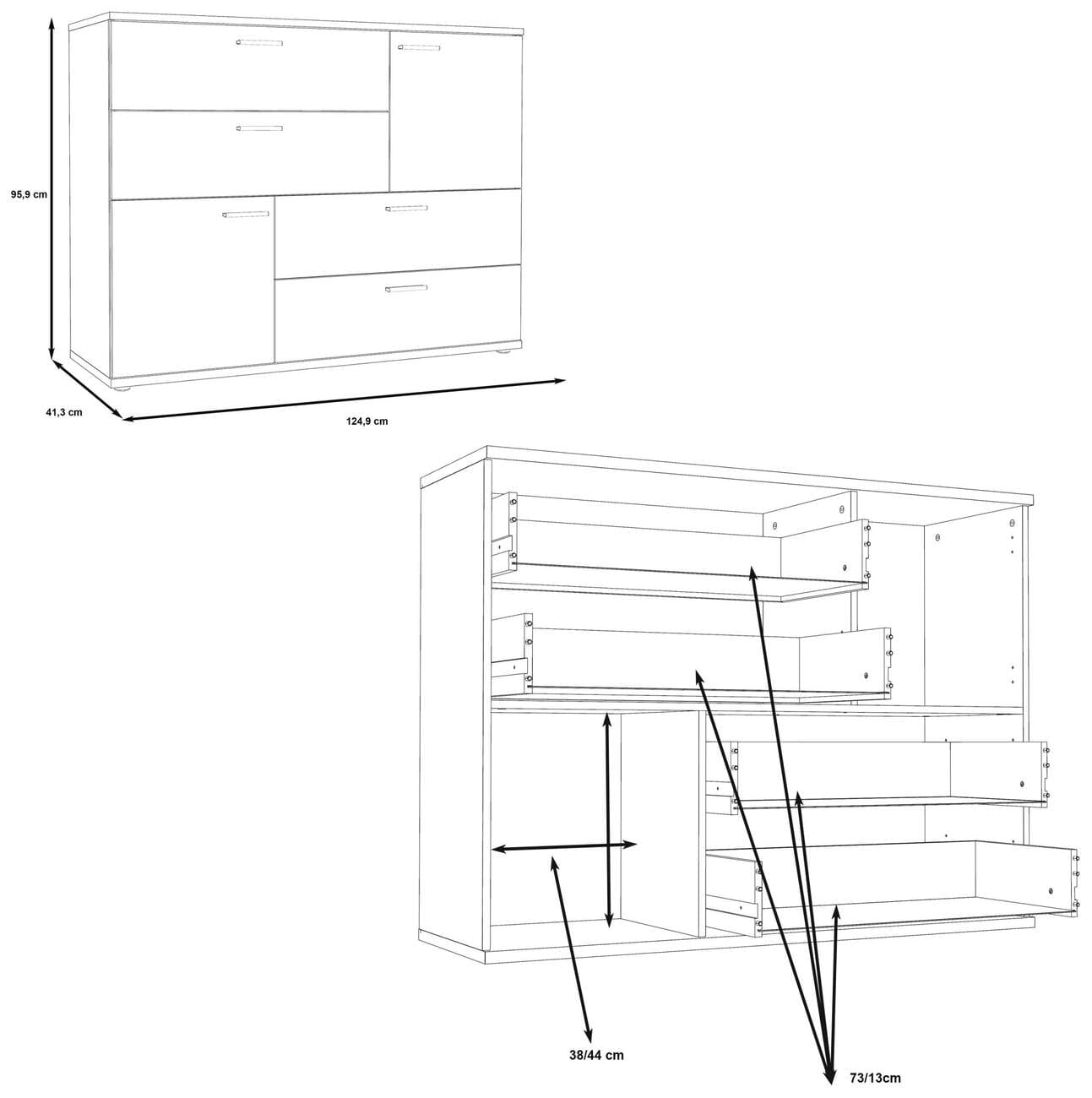 - Sideboard Skive: 4 Schubladen, 2 Türen, B/H/T 124,9 x 95,9 x 41,3 cm