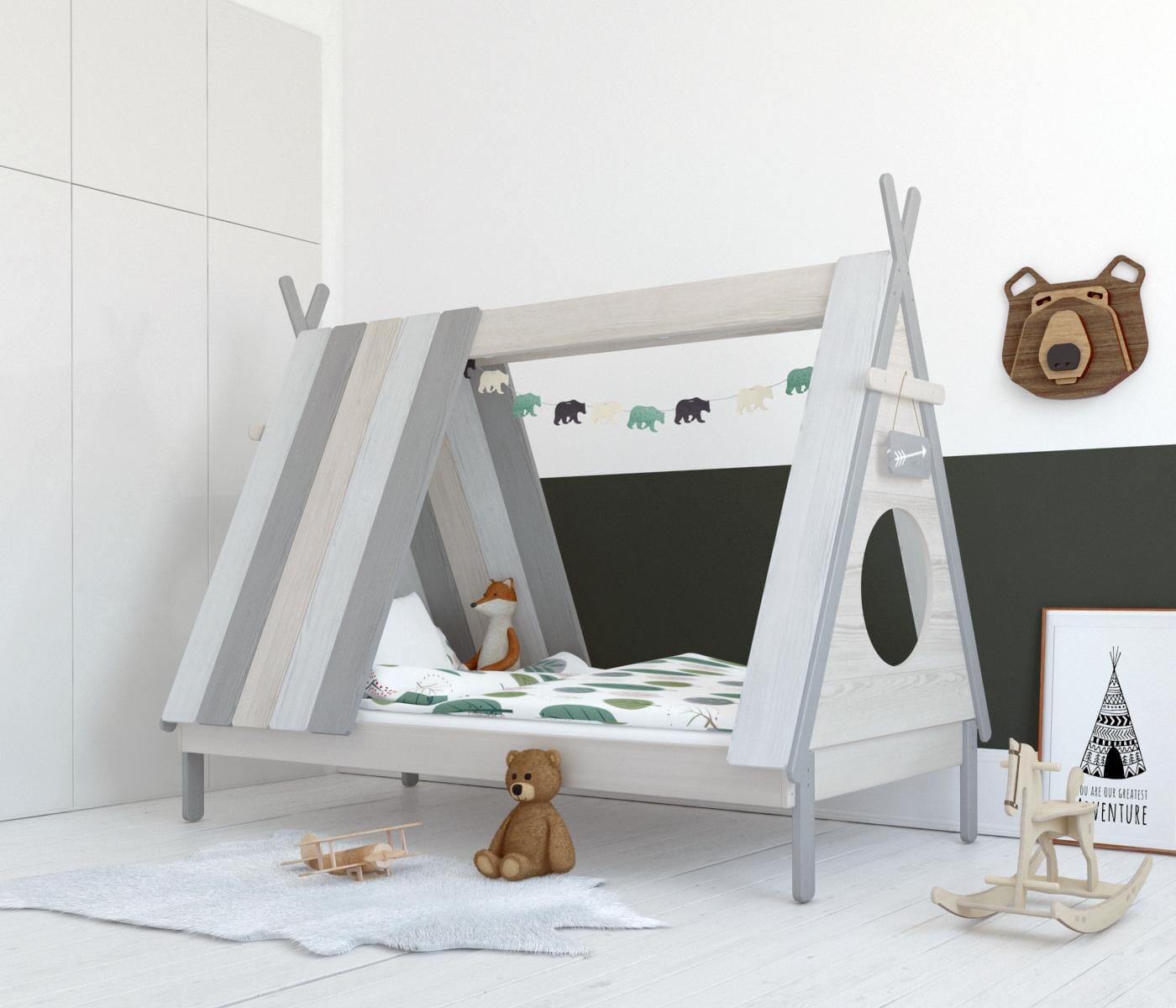 Kinderbett Bett in angesagter Tipiform 90 x 200 cm mit Lattenrost