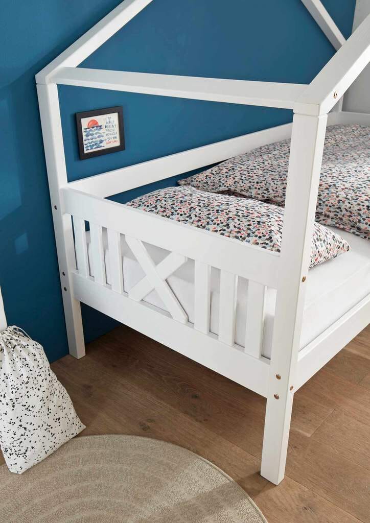 Kopf- und Fußende wurden aufwendig mit Streben und Kreuzen versehen. Selbstverständlich hat man alle Kanten von dem Kinderbett Juletta abgeschrägt, sodass das Bett völlig sicher ist. Es eignet sich mit einer Liegefläche von 90 x 200 nicht nur für kleine Kinder, sondern ist auch ein schönes Jugendbett. Genau richtig für kleine und größere Träumer.