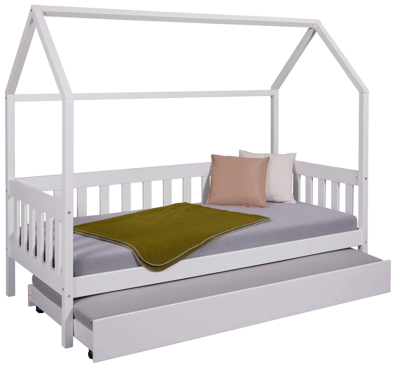 Kinderbett FUNKY HOUSEBED 90 x 200, Kiefer massiv, weiß lackiert