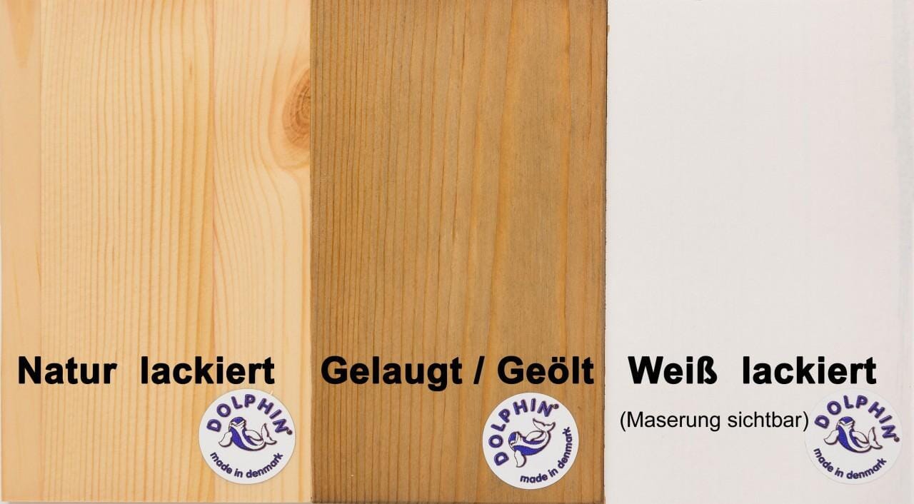 • gelaugt/geölt, natur lackiert oder weiß lackiert
