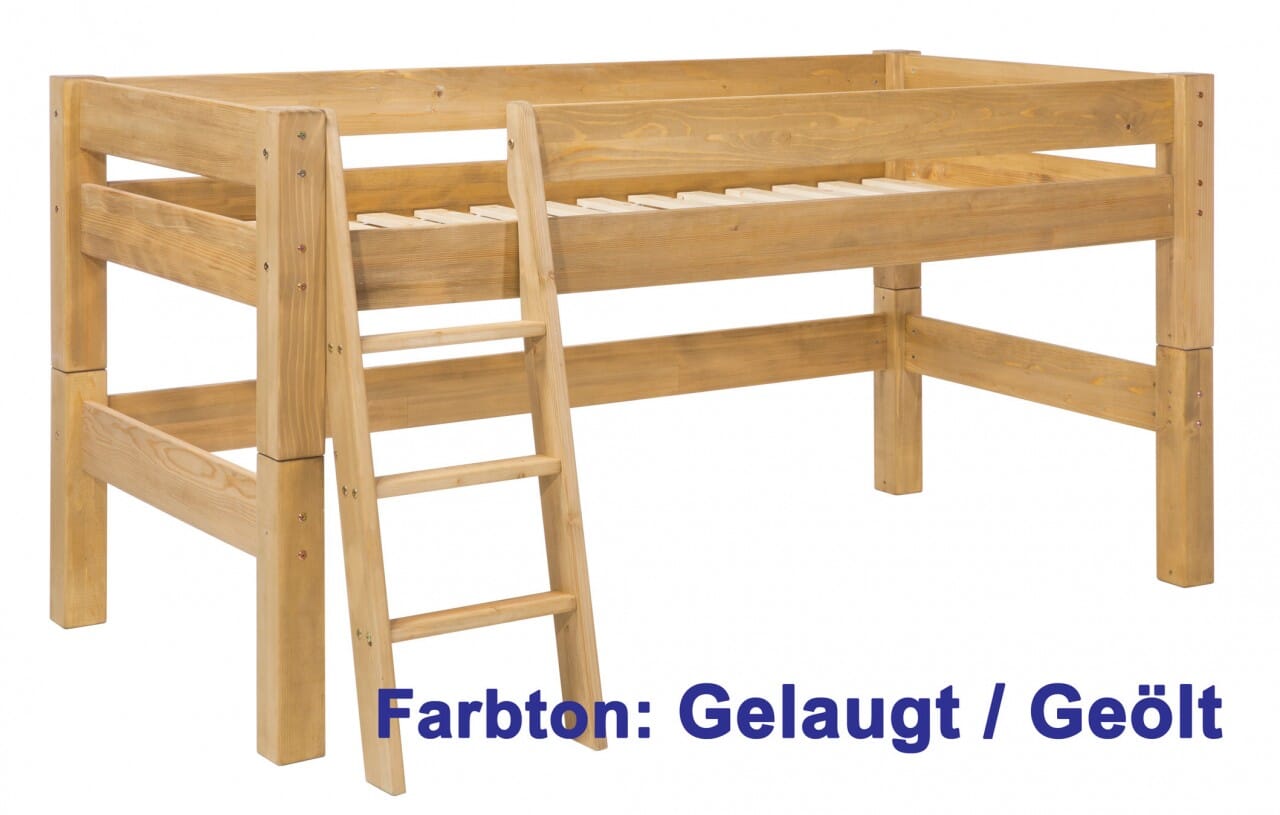 Kinderbett MOBY halbhohes Bett Leiter Kiefer massiv gelaugt geölt von Dolphin