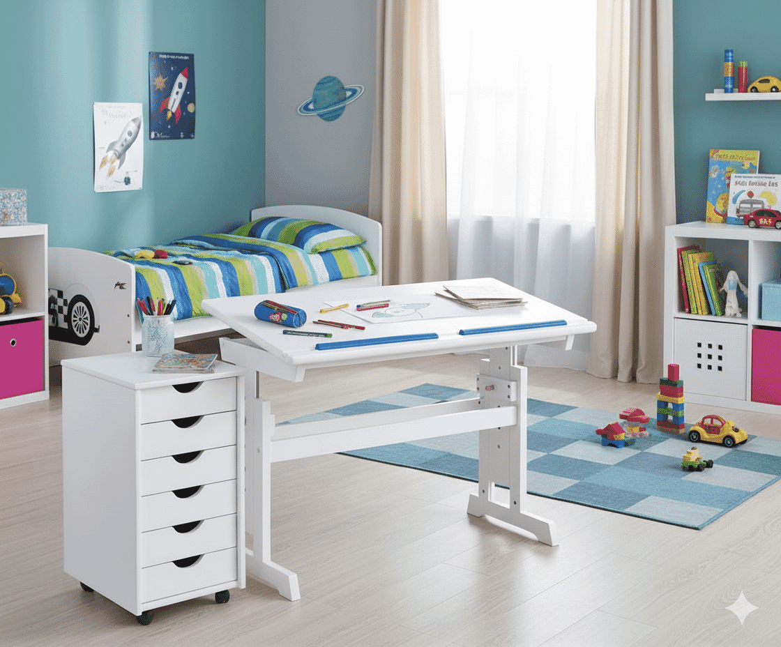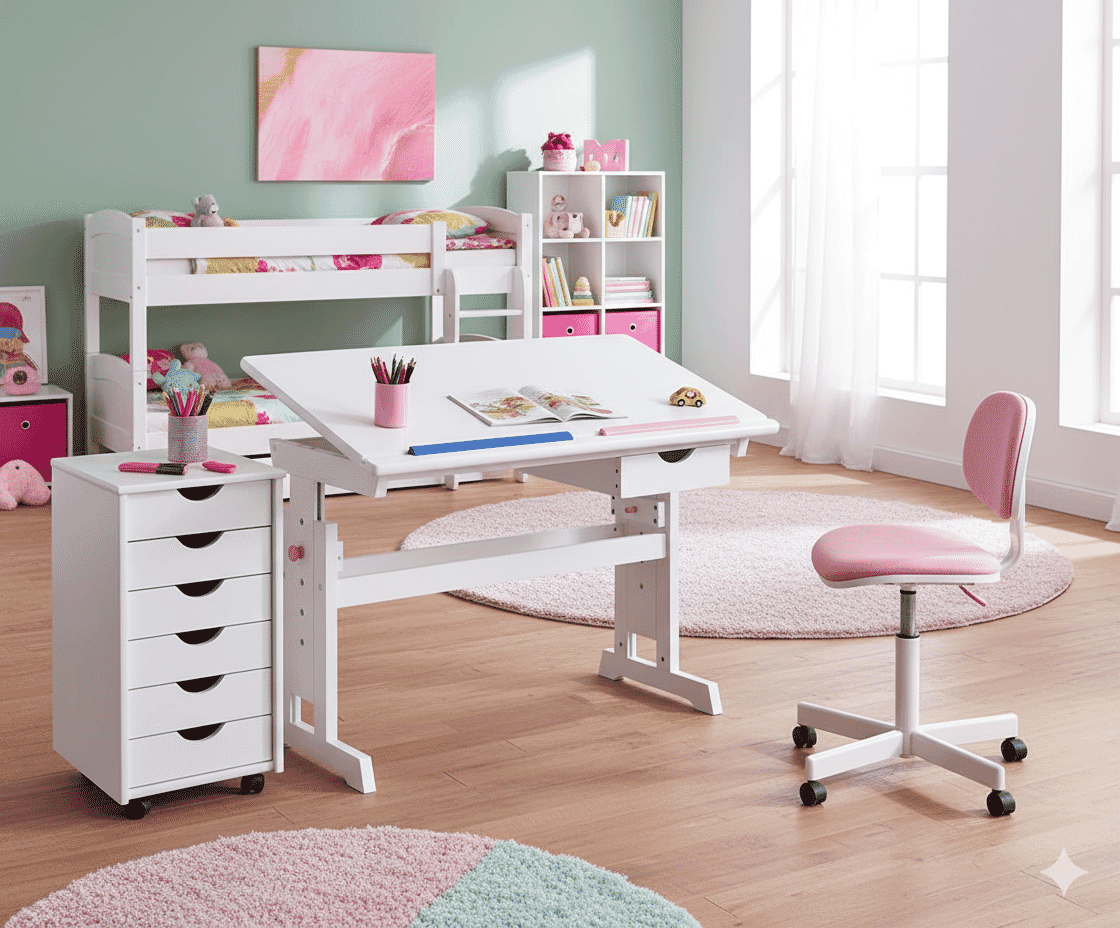 Kinderschreibtische bieten Platz für ungestörte Hausaufgaben.