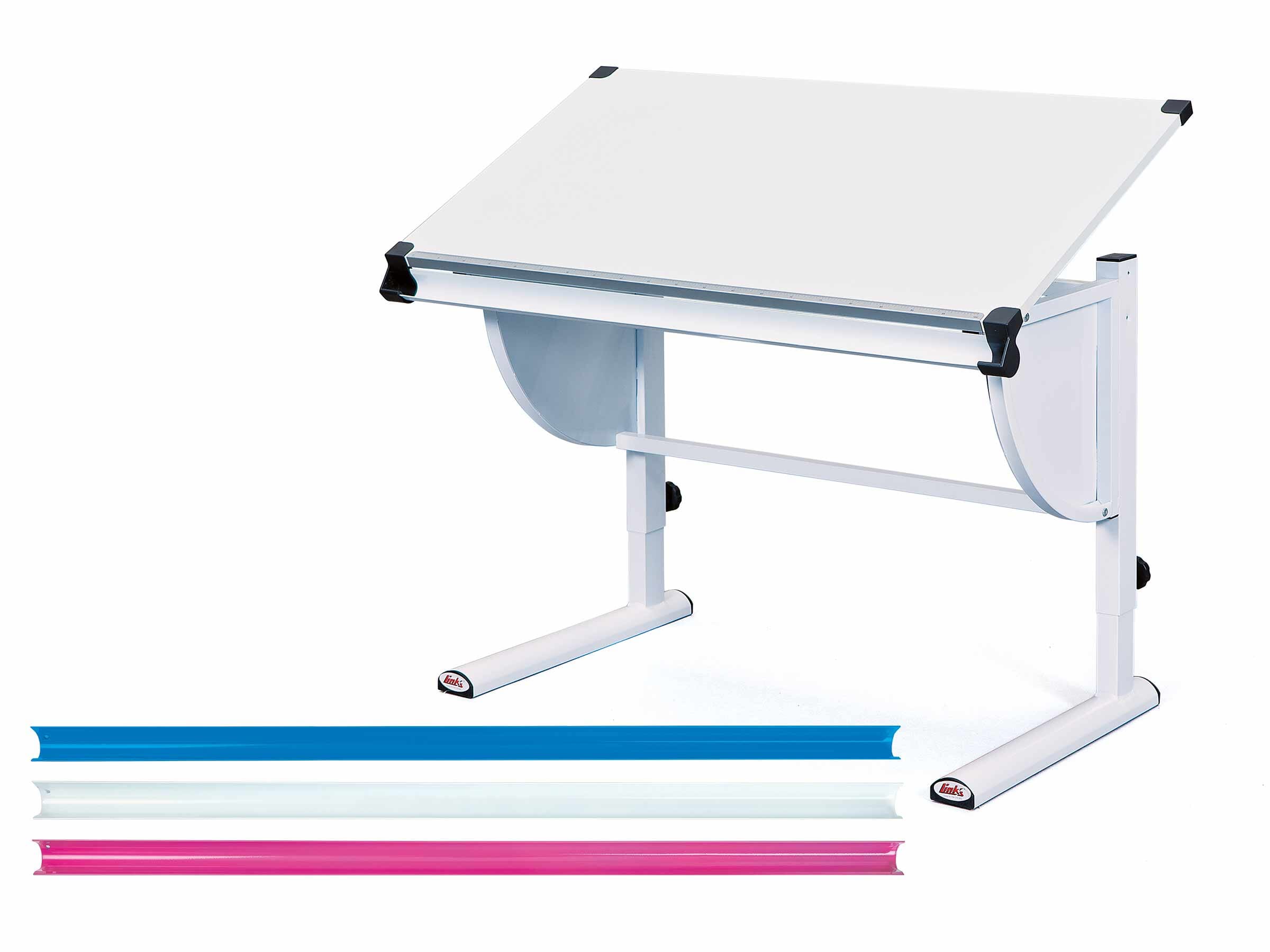 - inkl. 3 Stiftablagen in Weiß, Blau und Pink