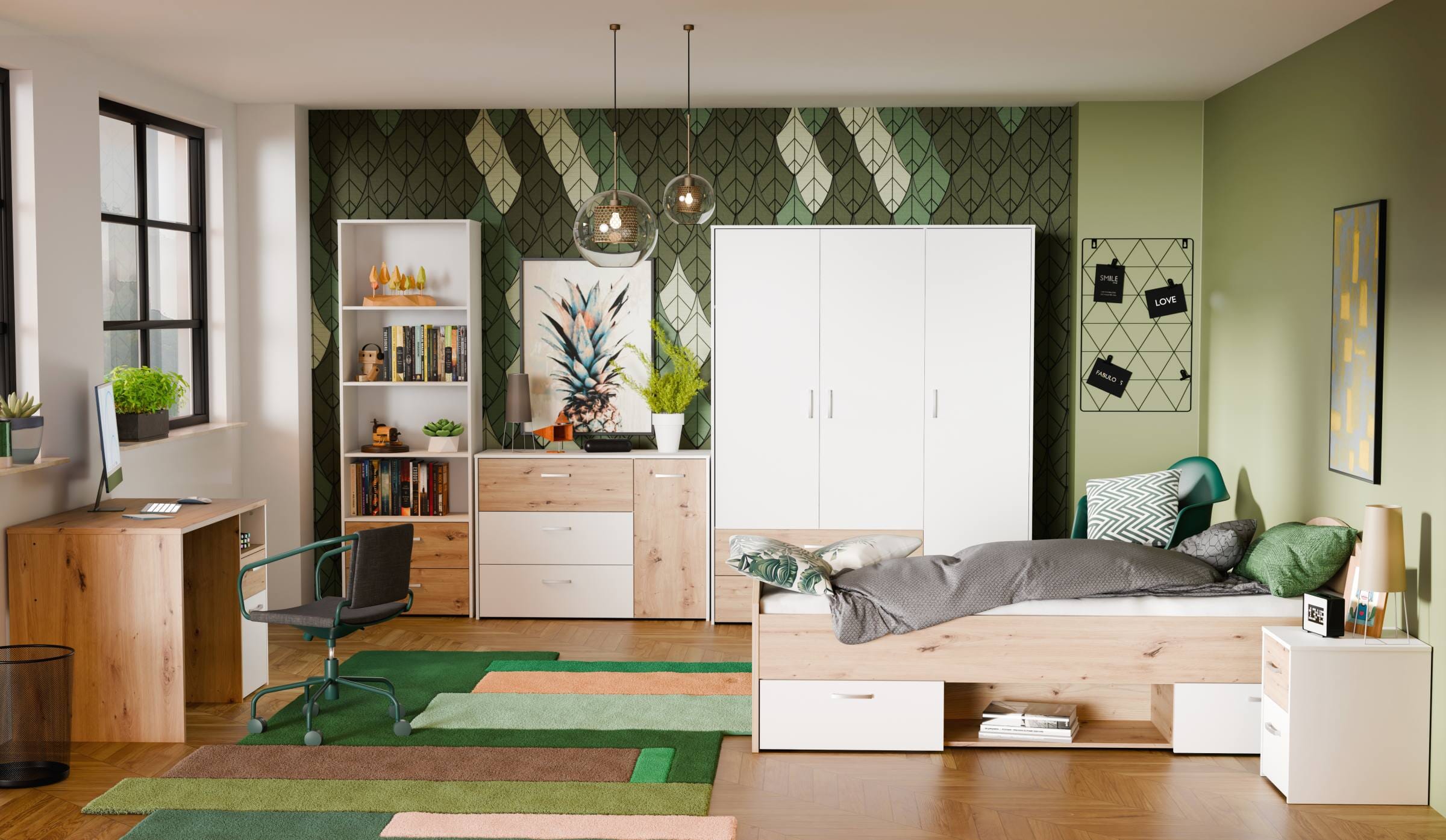 Das Jugendbett Culgoa in der Größe 90 x 200 Zentimeter ist in Artisan Eiche und Weiß gestaltet.