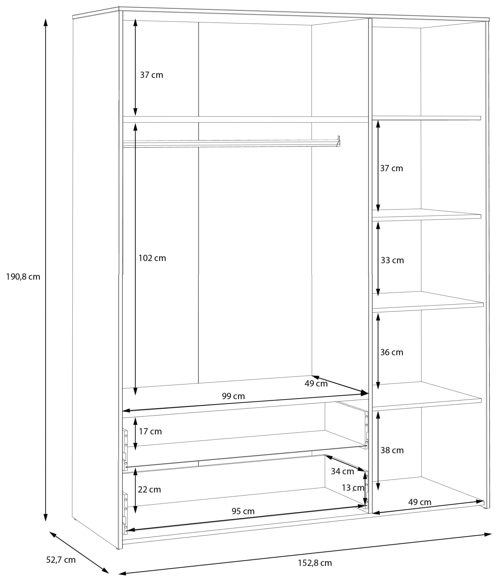 - Kleiderschrank Culgoa, 3-trg. 2 Schubladen, B/H/T 152,8 x 190,8 x 52,7 cm