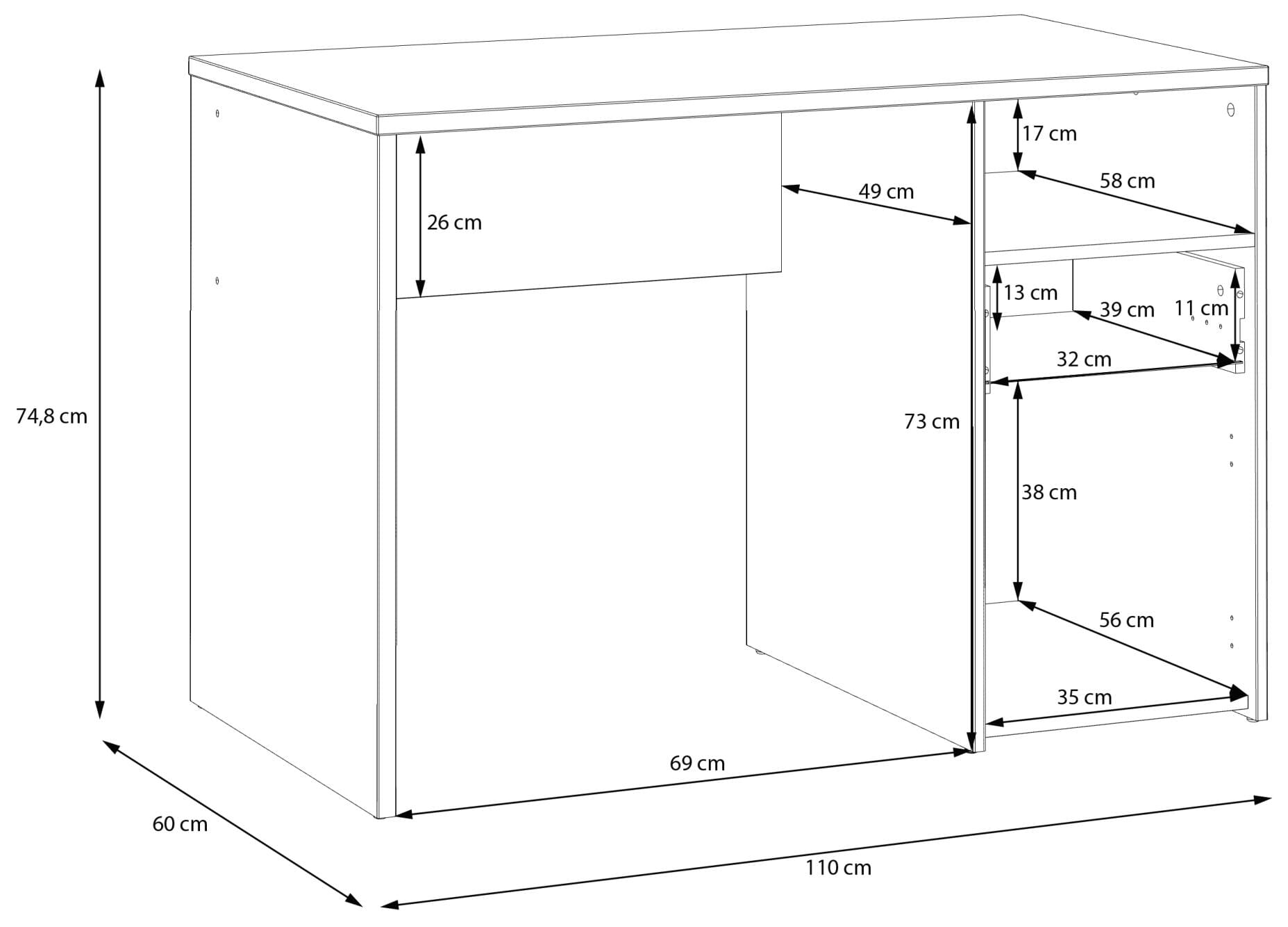 - Schreibtisch mit Tür und Schublade, B/H/T 110 x 73,8 x 60 cm