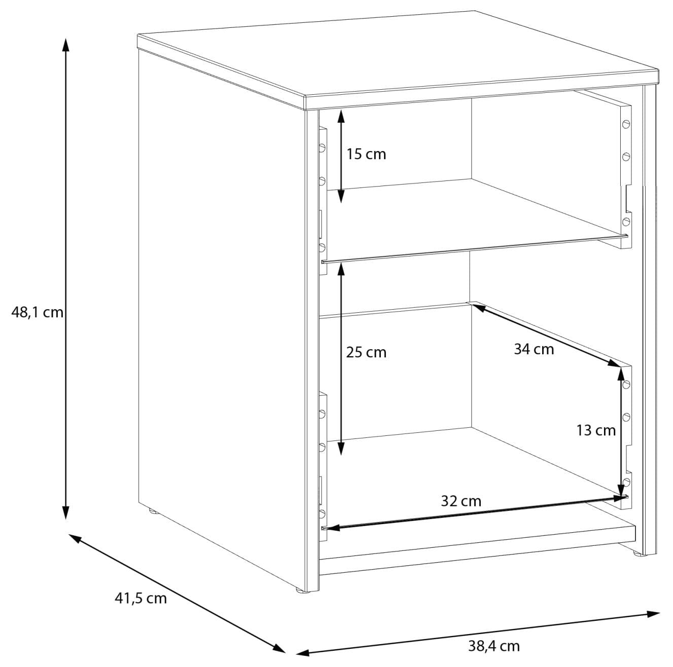 - Nachtkommode mit 2 Schubladen, B/H/T 38,4 x 48,1 x 41,5 cm.