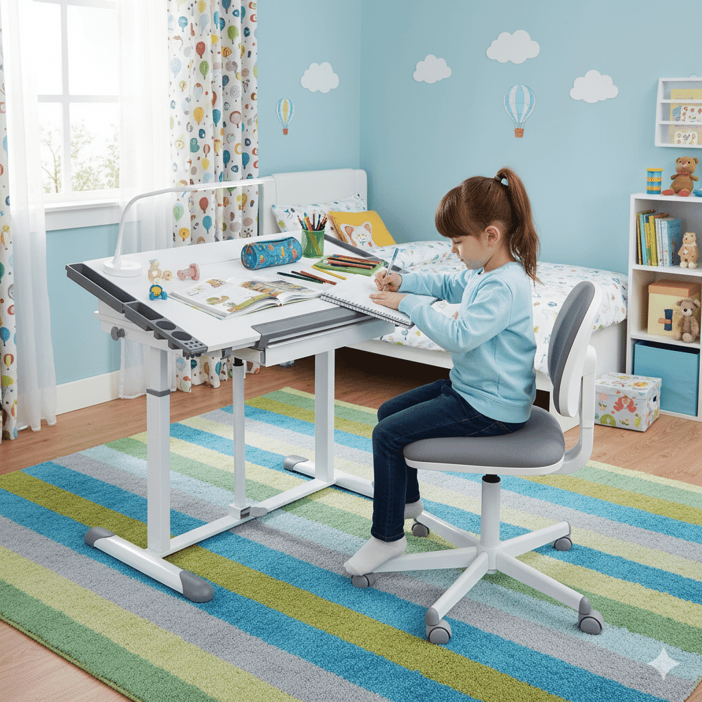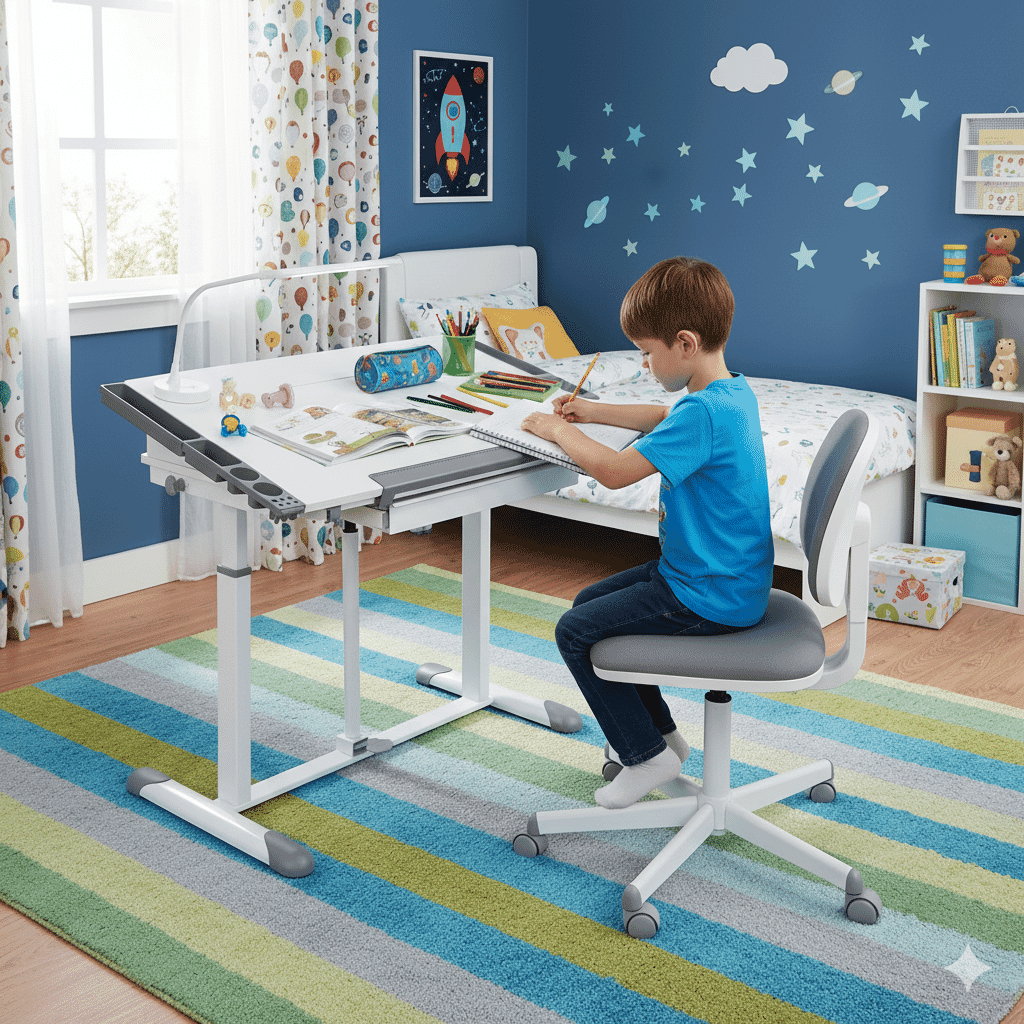 Schülerschreibtisch Jugendschreibtisch mit Lift - Höhe und Neigung verstellbar mit Schublade