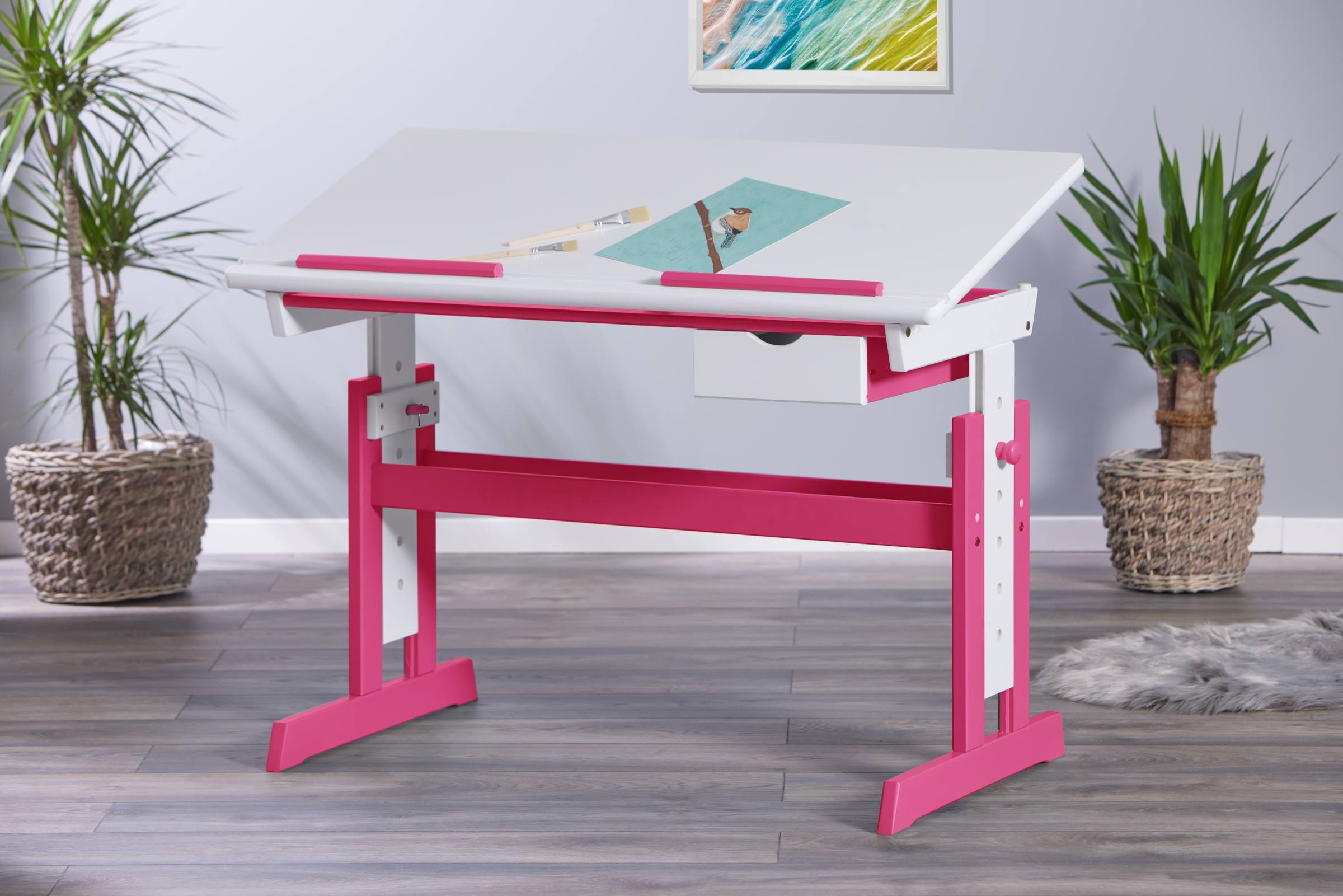 Kinderschreibtisch PIJII Pink weiß lackiert Höhe verstellbar Schublade